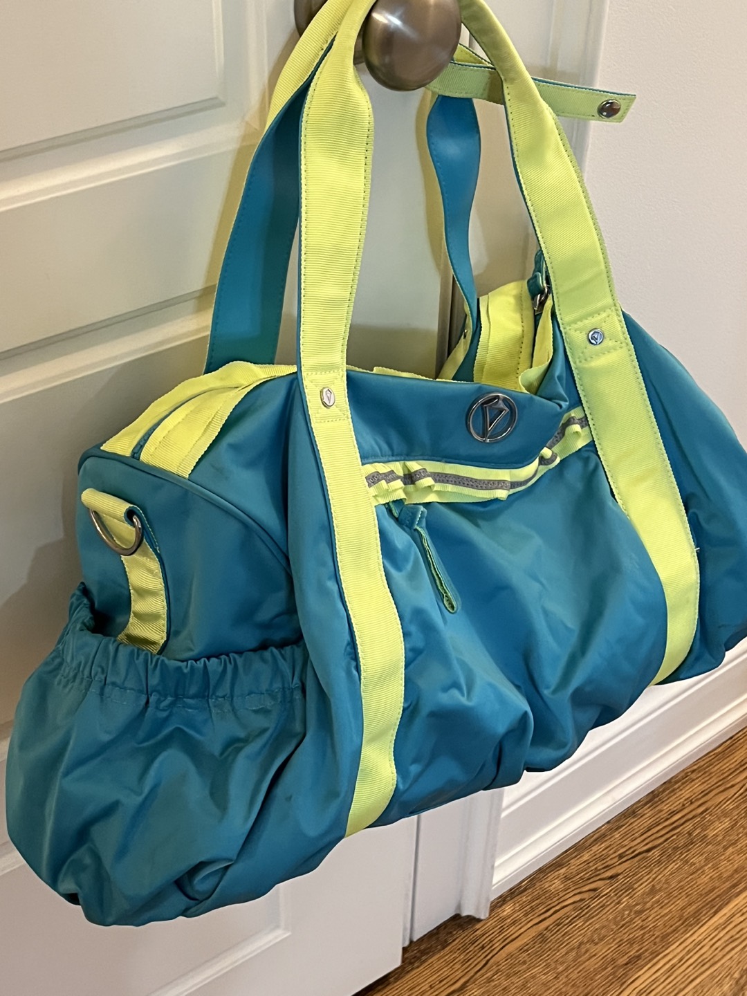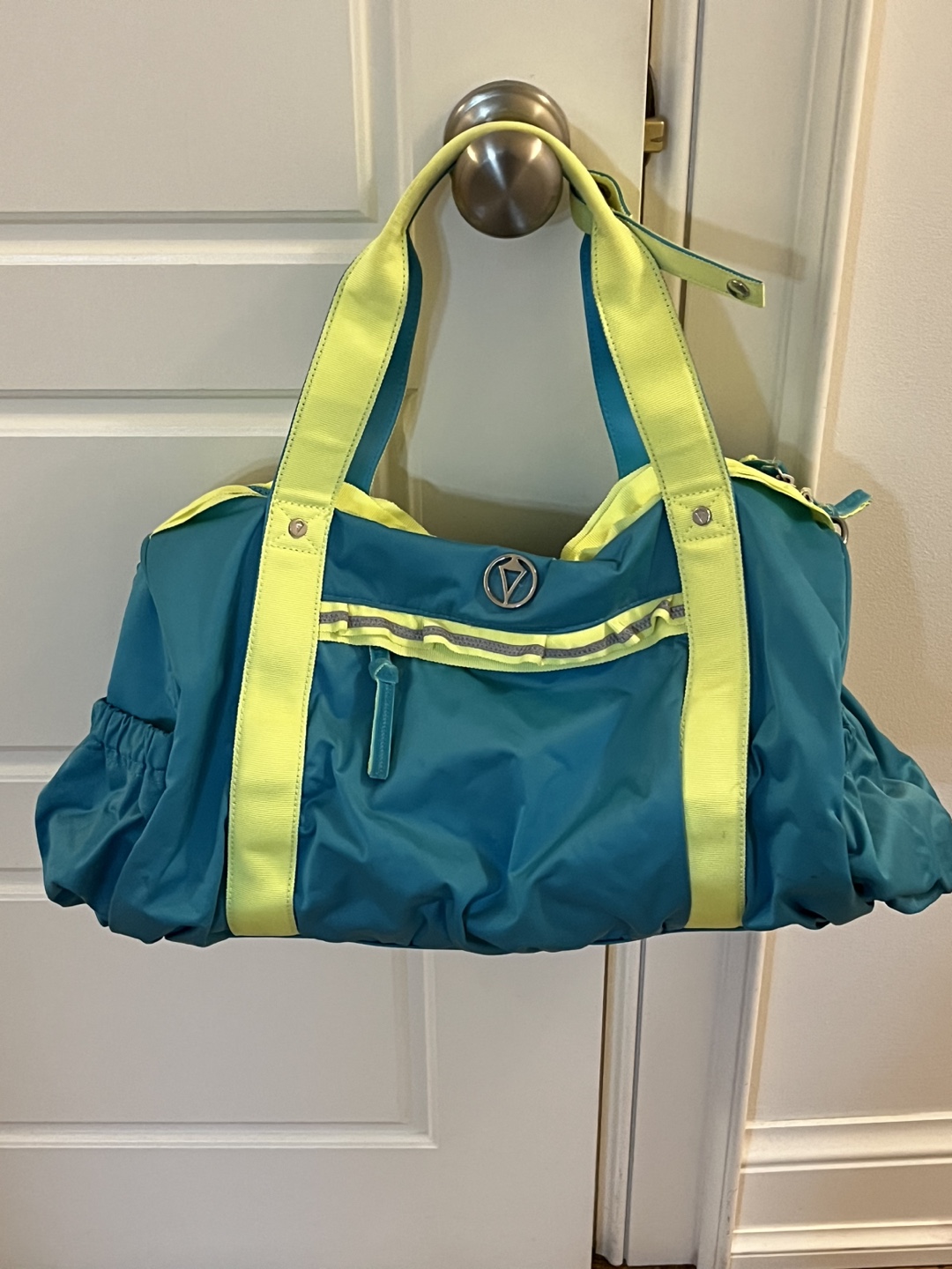 13Brand new, never used ivivva athletica (youth division of lululemon) bag. Long shoulder strap also included. Great functionality with outside zip pocket, open side pockets, plus inside zip pocket and 3 inside open pockets. Yoga / gym / duffel bag About 16-18” long, 13” high and 7” wide.