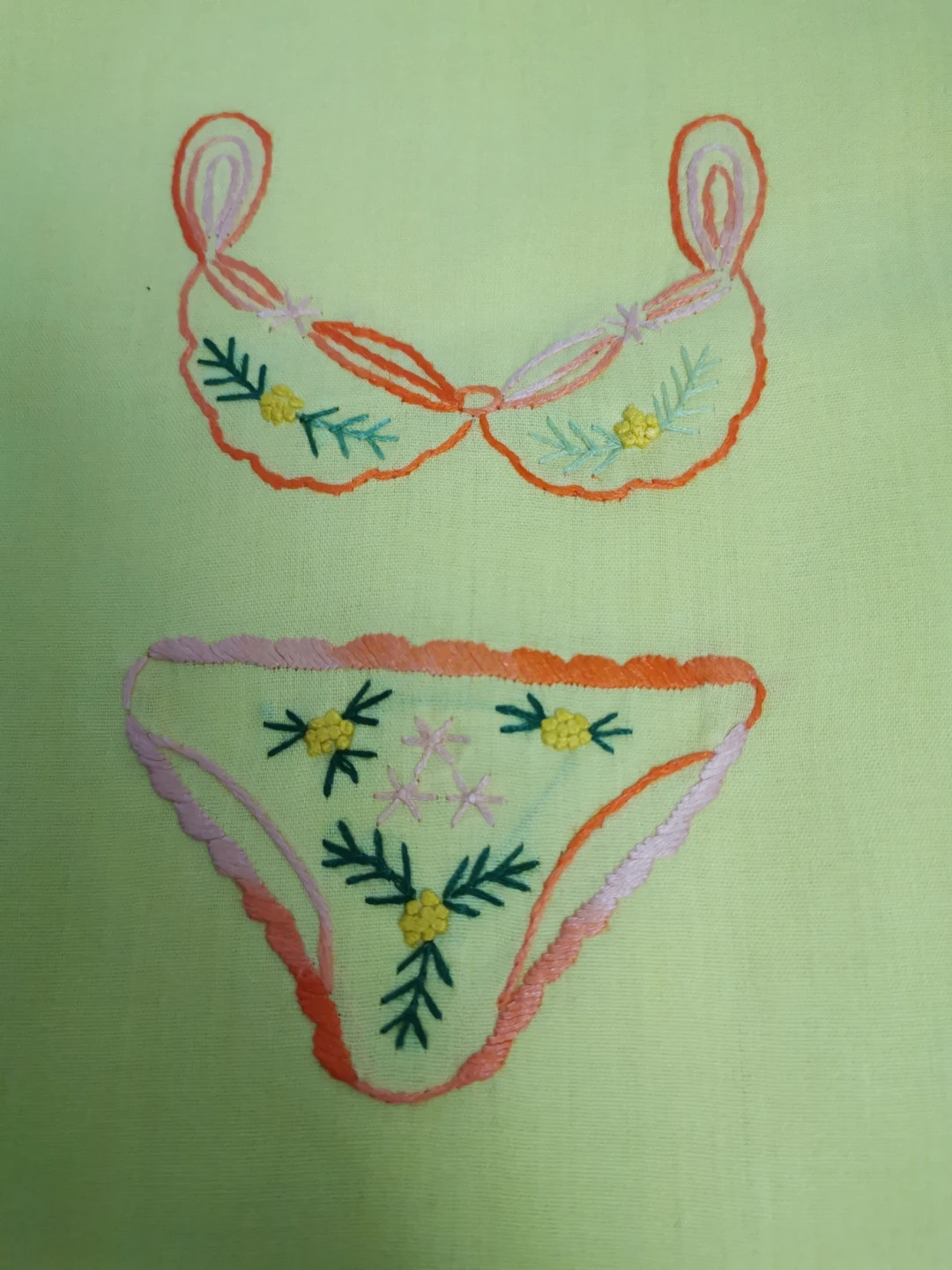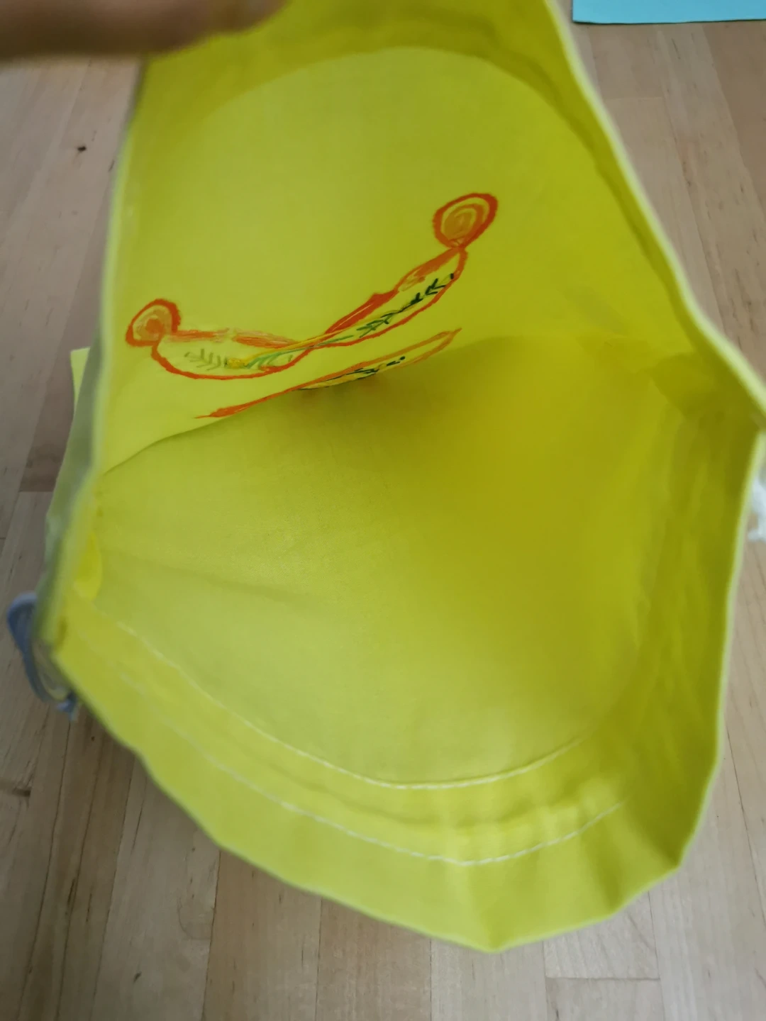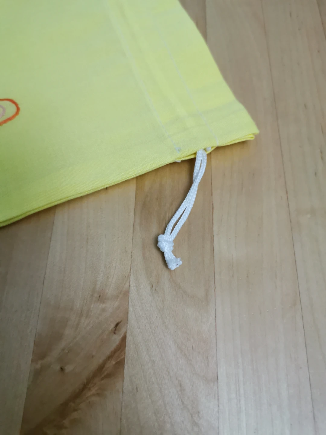 This is a cute yellow drawstring bag with an embroidered lingerie design. It's perfect for storing small items or using as a gift bag! The bag is in great condition and ready for a new use