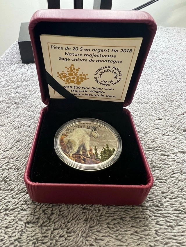 Offering a beautiful 2018 Royal Canadian Mint $20 fine silver coin featuring a mountain goat, .9999 pure silver. This coin would make a great gift or addition to any collection. It comes complete with the original box and certificate. Details: Composition: 99.99% pure silver, Weight: 31.39 g, Diameter: 38 mm, Face Value: $20, Finish: Proof. If the ad is still up, it's still available.