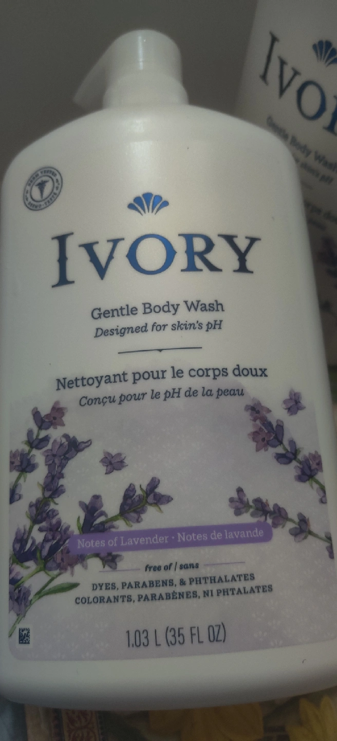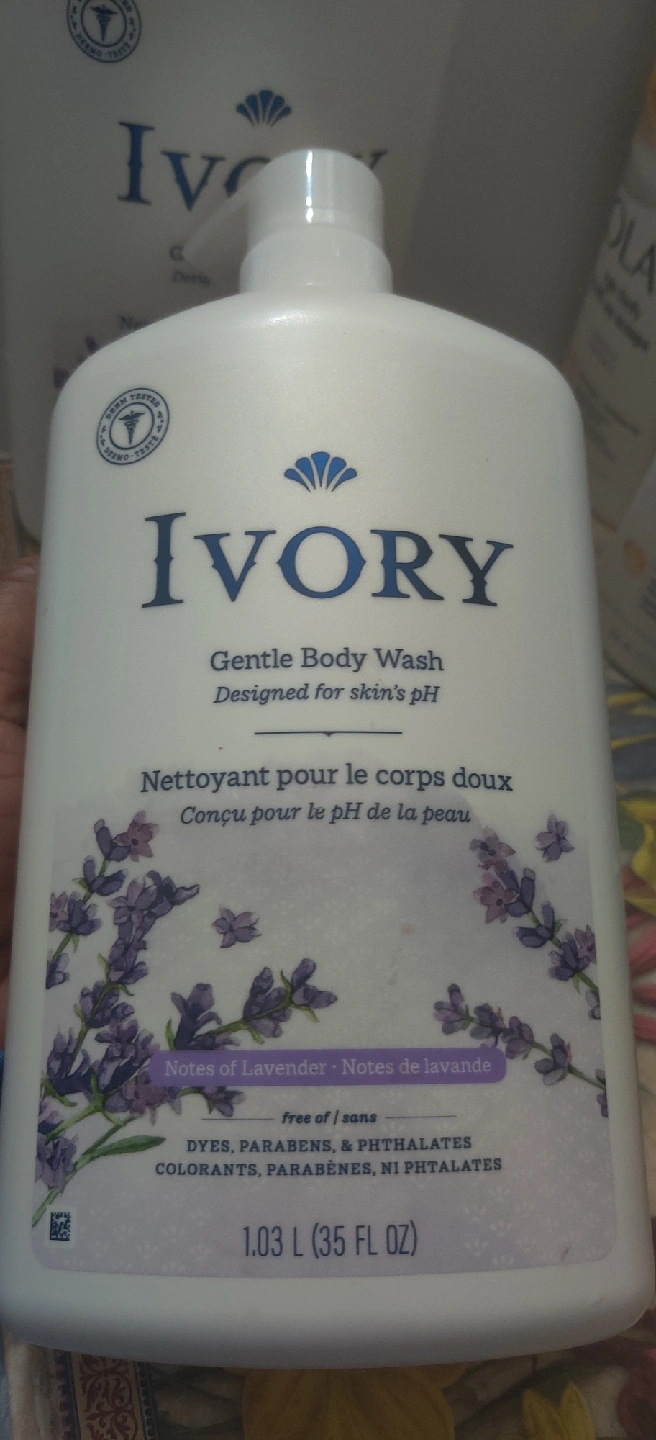 1000+Ivory Gentle Body Wash designed for skin's pH. It's free of dyes, parabens, and phthalates! This body wash has notes of lavender and comes in a 1.03 L (35 FL OZ) bottle x2
