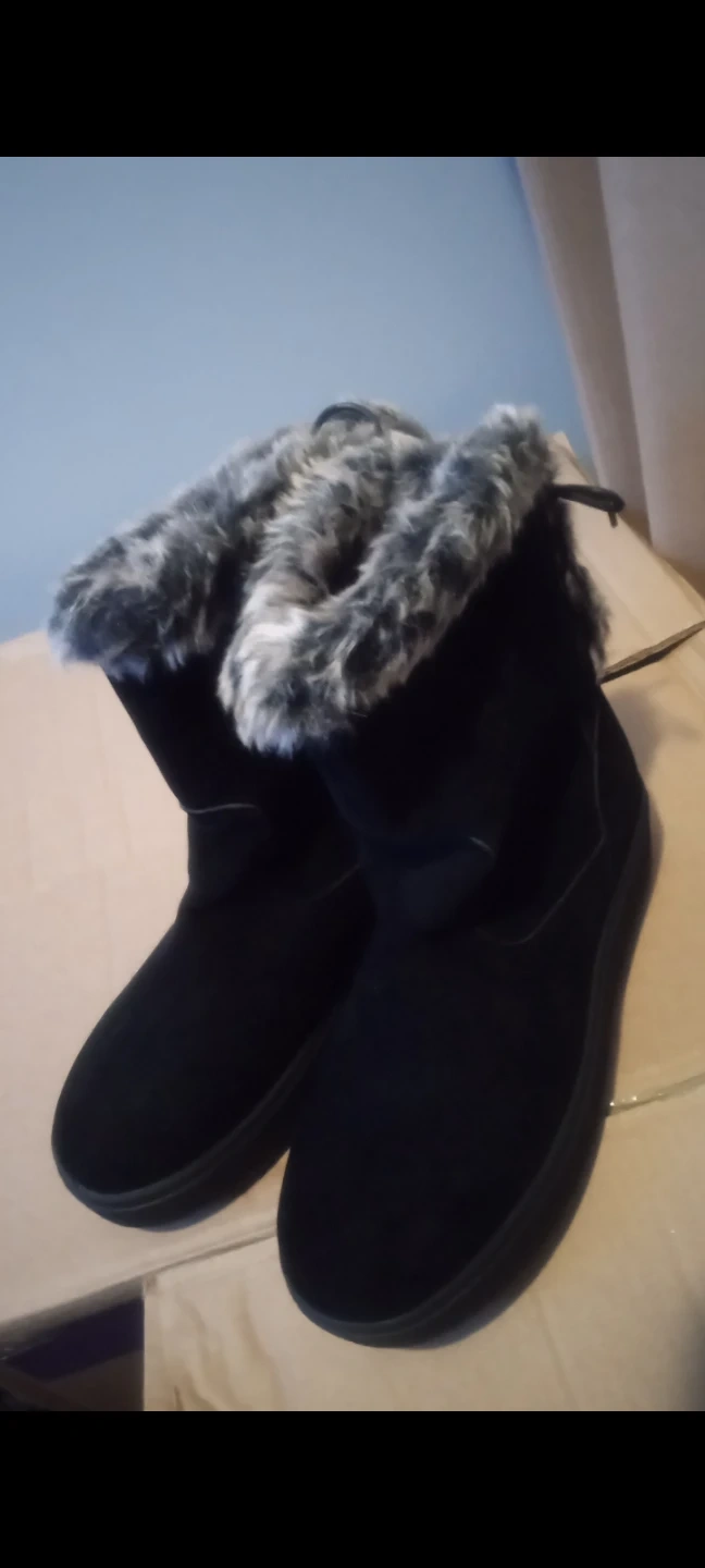 Cozy black suede boots, These boots have a comfortable flat sole and a convenient pull-on style. They're perfect for keeping your feet warm during coldest winter weather! Brand New, No Box