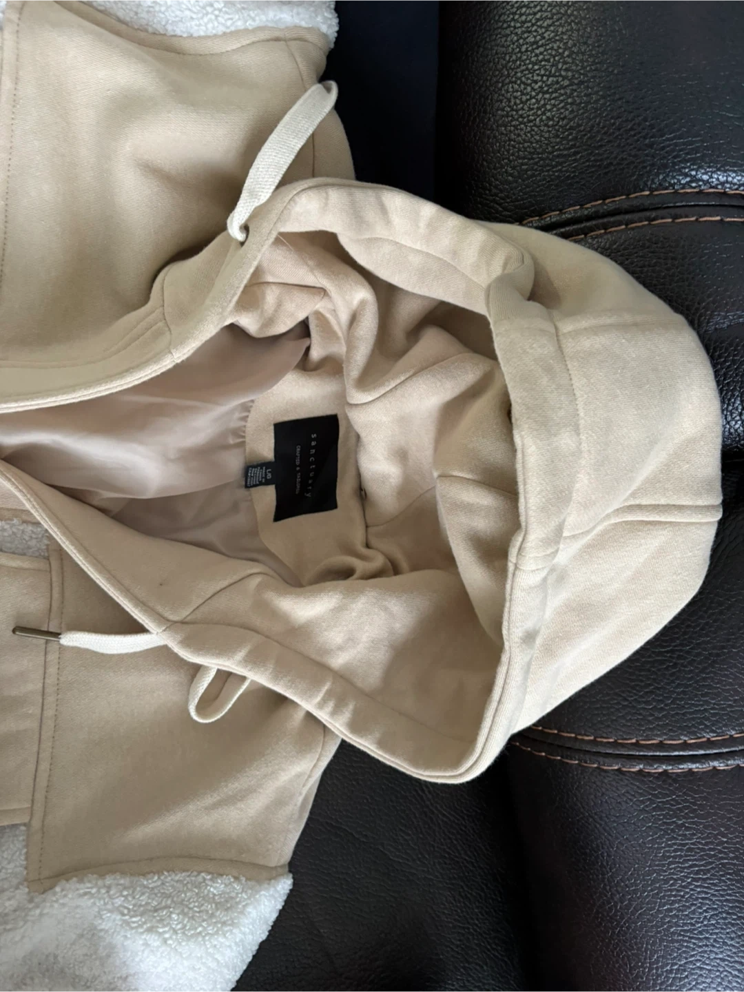 Women Sanctuary Sherpa Jacket - Cream & Tan - Size L
