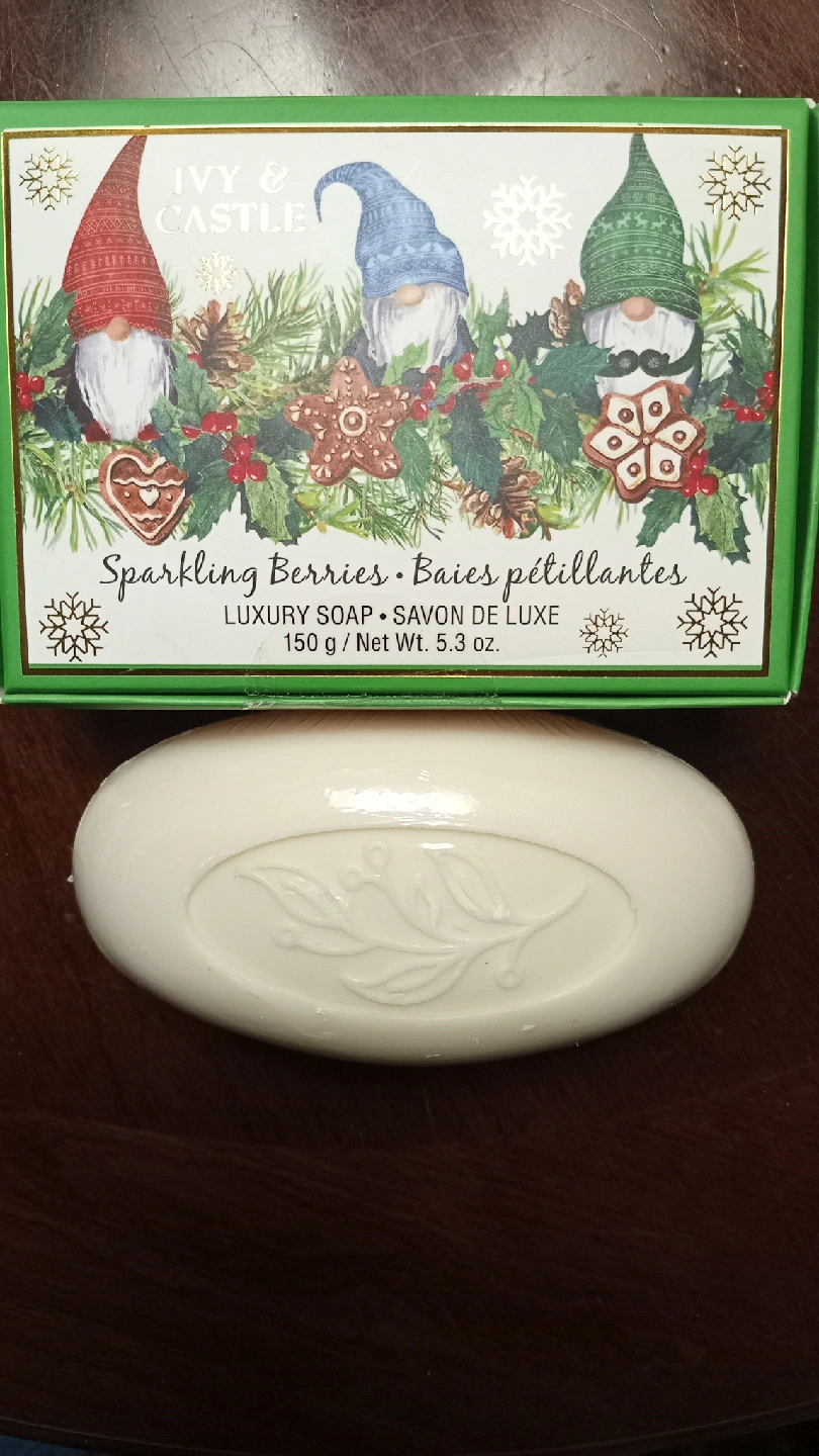 Selling a bar of Ivy & Castle luxury soap. Holiday Edition. Produced from the finest ingredients to soften and hydrate your skin with plant based shea butter, and black currants. net wt 5.3 oz.