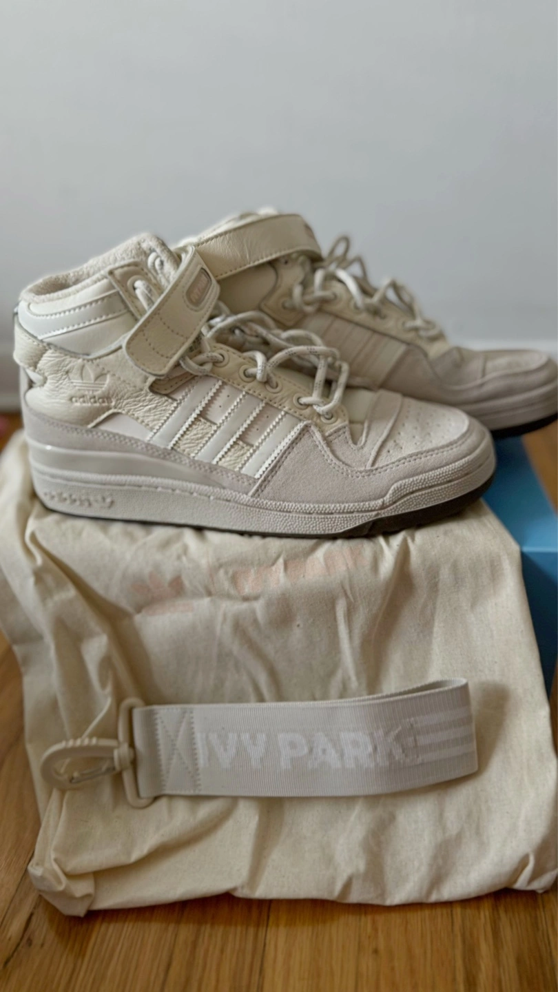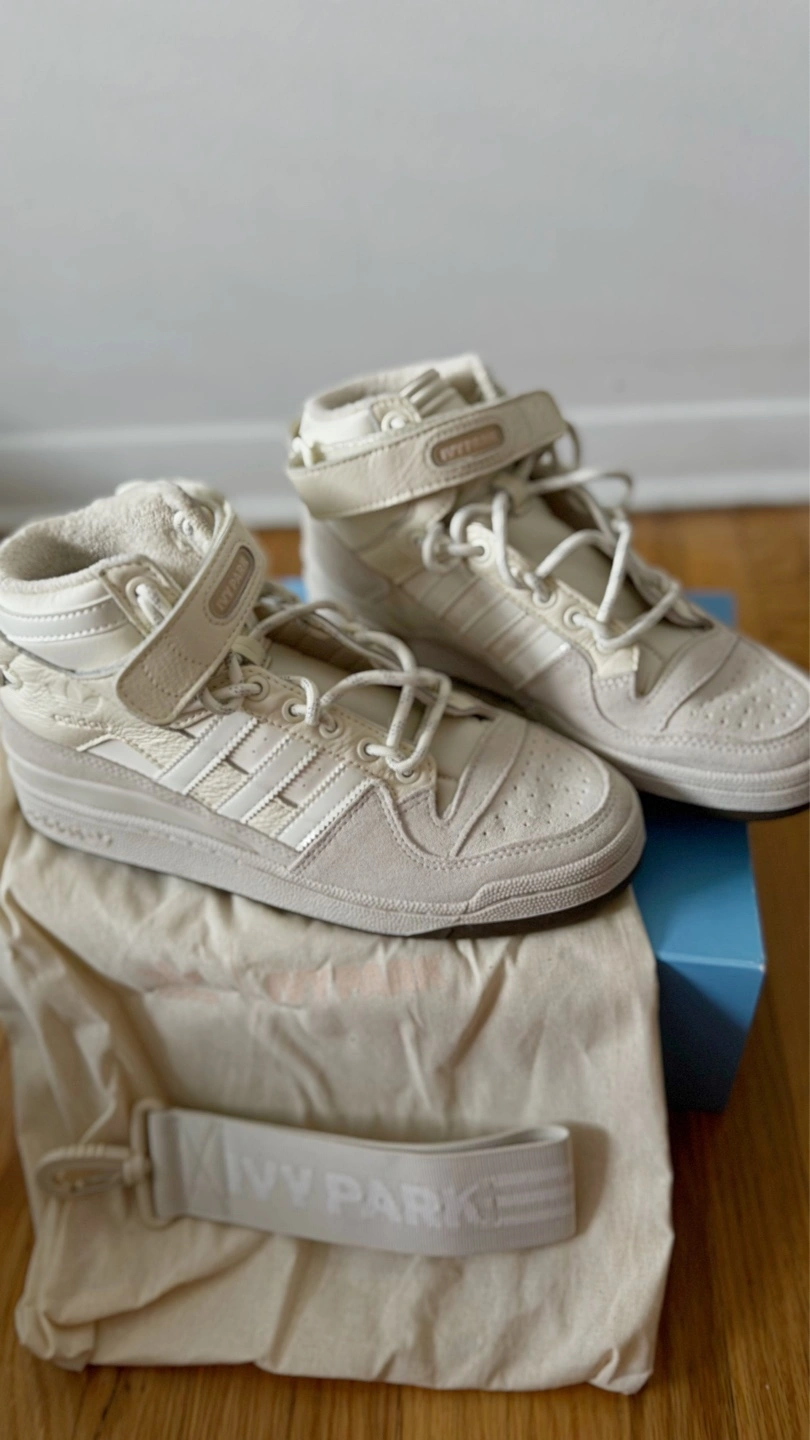 Cream-coloured high-top sneakers. Adjustable strap. Premium leather and suede. Neutral hoops shoe tones. Comfortable fit. Gum rubber outsole. Comes with dust bag.