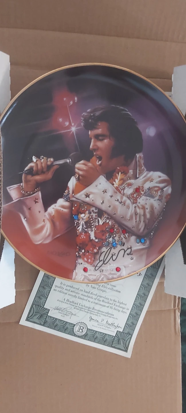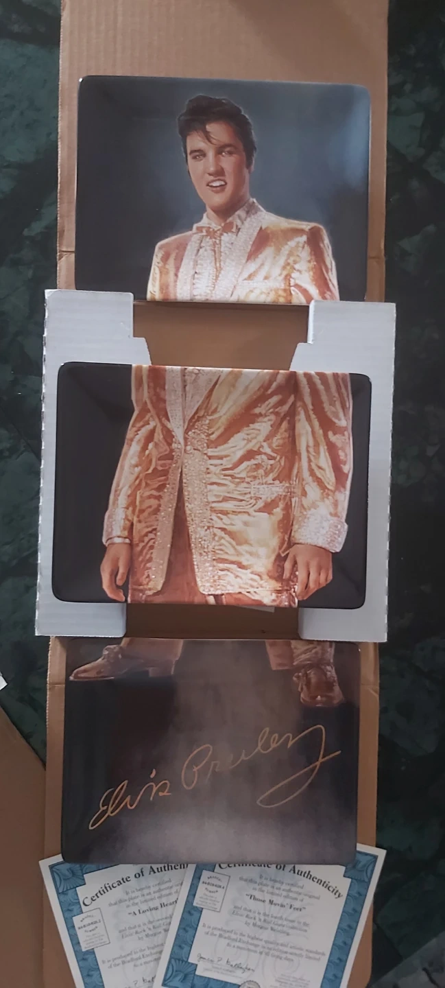 This is a limited edition collector plates featuring Elvis Presley. It comes with a certificate of authenticity. It's part of a collection produced on fine bone china. Last set is a set of 3 plates to make one.