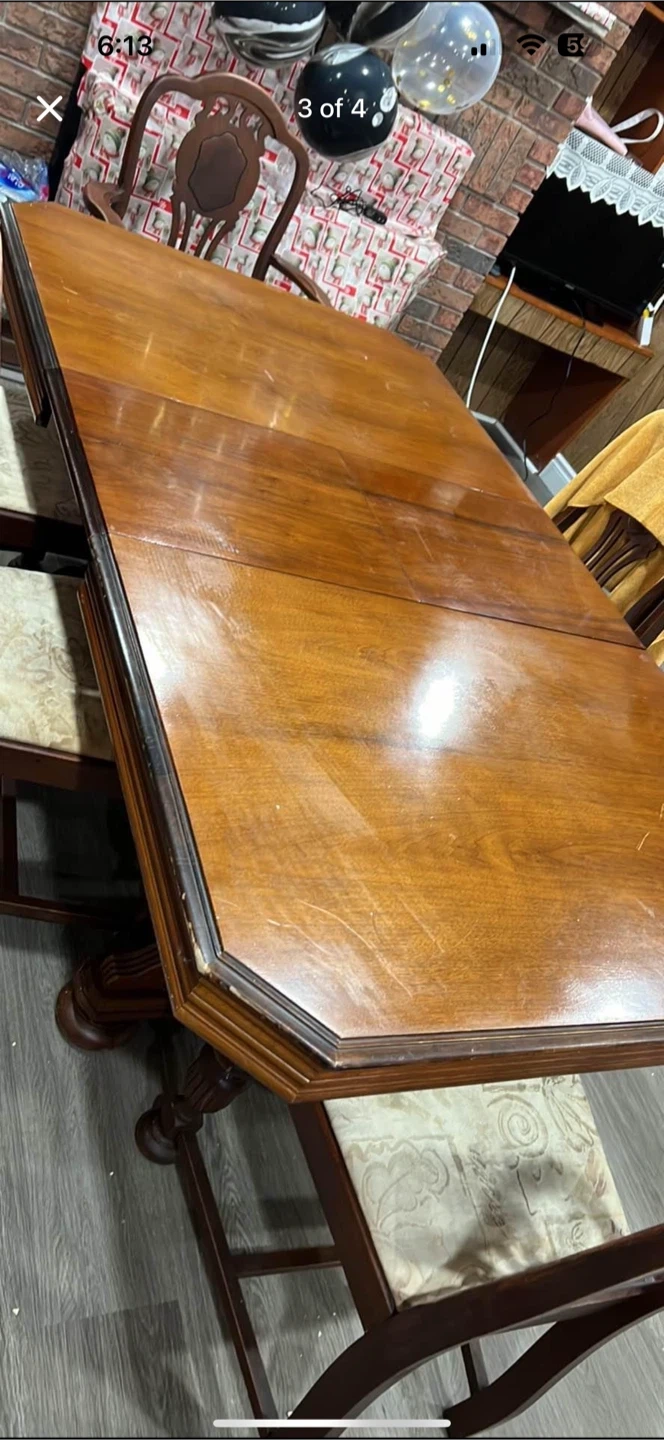 Selling a dining table with chairs. It has a wooden finish and classic design. The table can be extended. Its not like a new its old and chairs old looks old with mmarks. But i am giving table cover and chair covers as well for free. Pick up only at drinkwater or chinguacousy intersection. Thanks