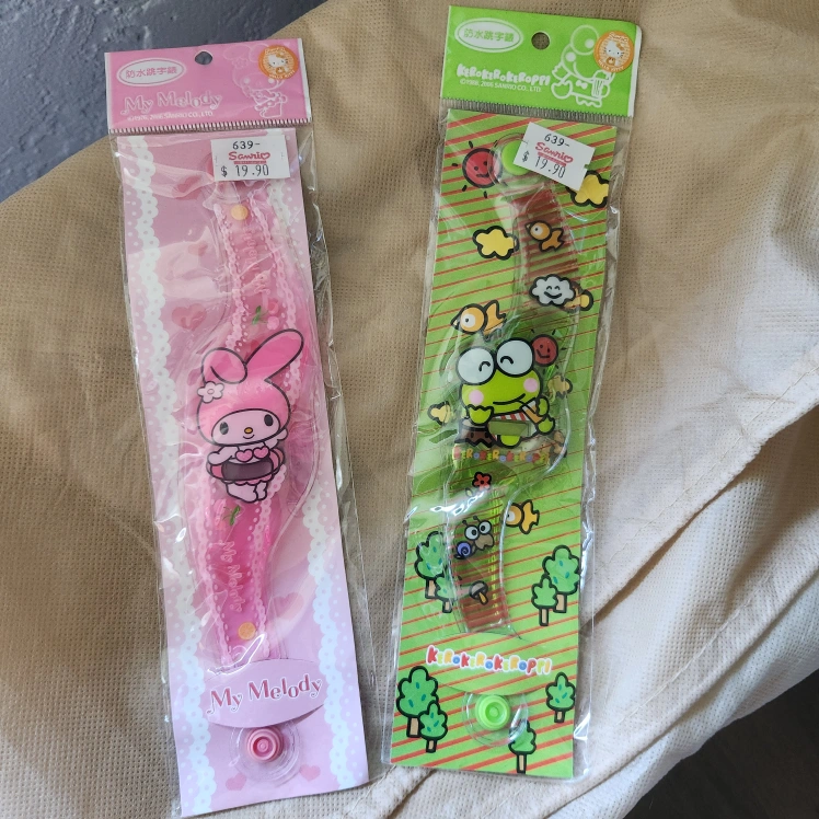 Two new and sealed children's watches. But the batteries don't work anymore so you will have to treat them like bracelet. The watch function is no longer available. one featuring My Melody and the other Keroppi. You could give these as a sweet gift to a child and pretend to be bracelet.