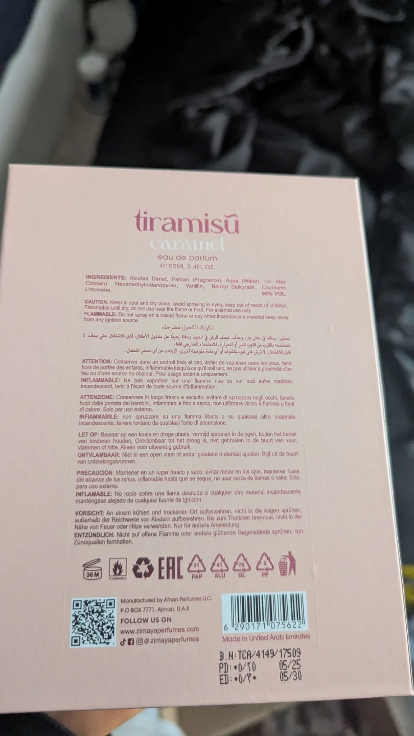 Buy & SellZimaya Tiramisu Eau de Parfum 100mlZimaya Tiramisu Eau de Parfum 100ml$40This is the Zimaya Tiramisu Eau de Parfum. It's a 100ml bottle. Made in United Arab Emirates.ConditionNewBrandZimayaWHERE TO MEETtrackView MapSELLERverifiedtdotBram E600 reviews1 chats·1 favorites·14 viewsSEND CHAT TO SELLERHi tdot! I’m interested in your listing.Hi tdot! I’m interested in your listing.Get the Karrot app to chatSign In to chat