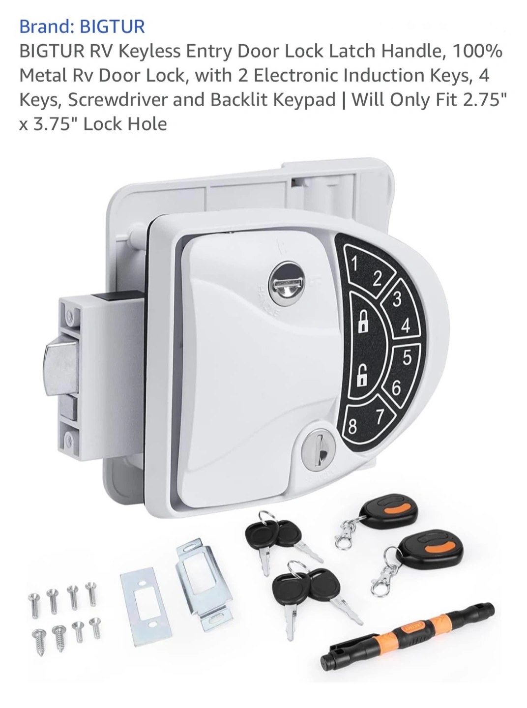 Looking to upgrade your RV security? I have a BIGTUR RV Keyless Entry Door Lock available.
