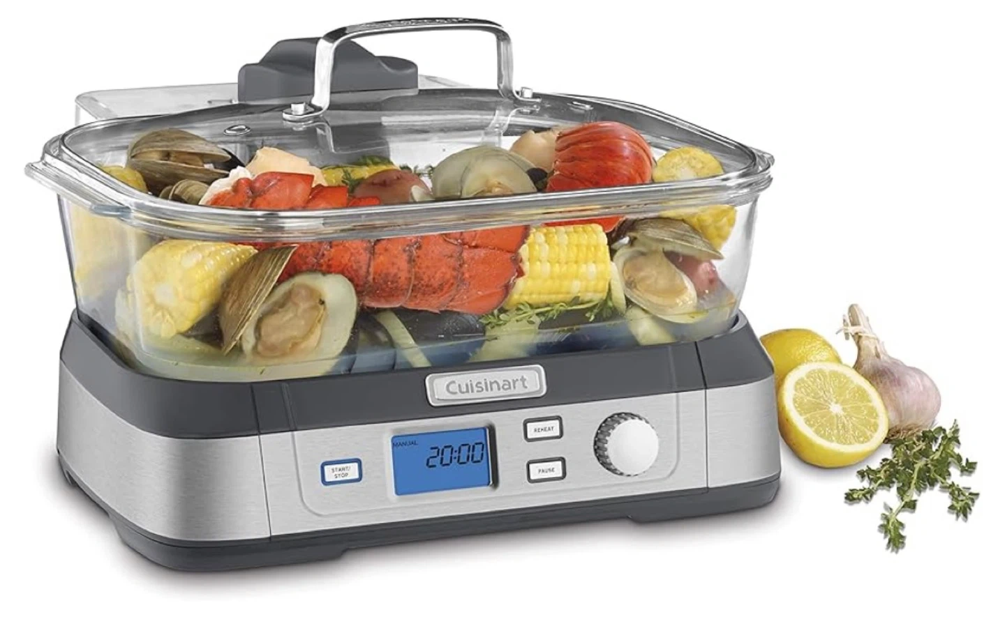 This Cuisinart electric steamer is great for cooking seafood, vegetables, and more. It features a large glass bowl and a digital timer. Steams food quickly and efficiently!