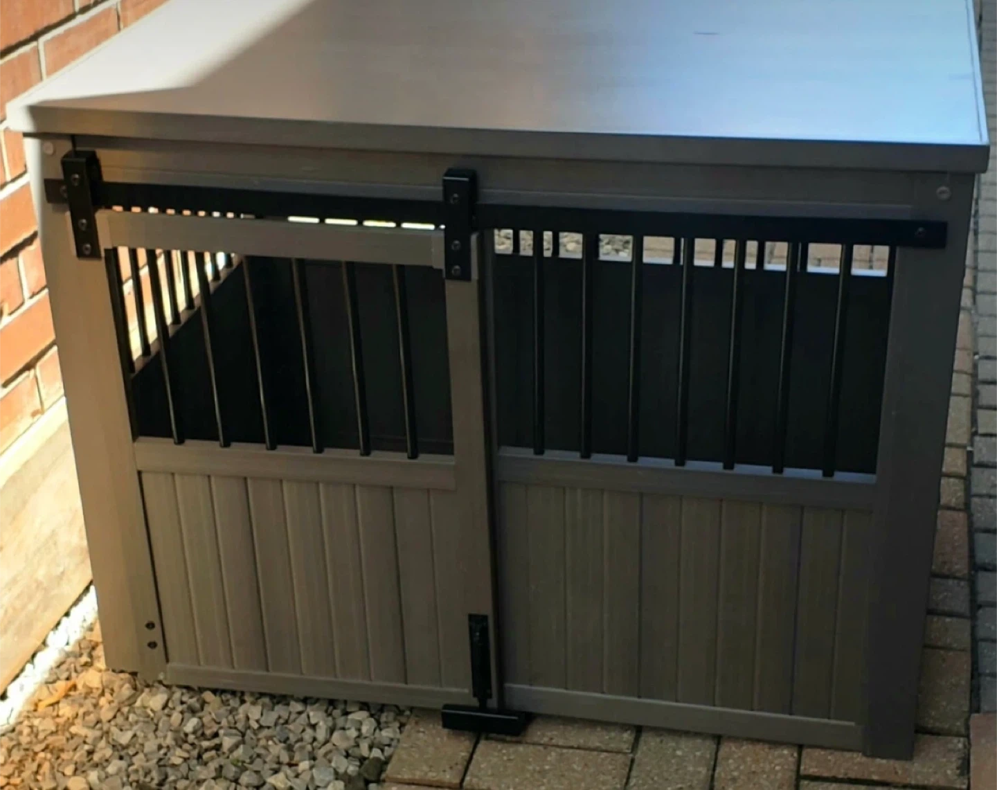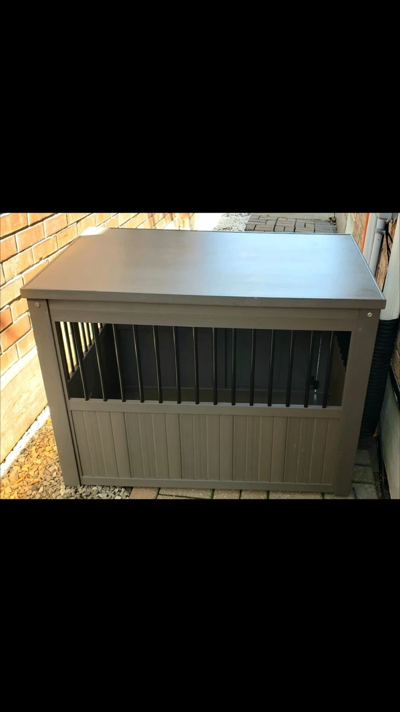 Selling an ECOFLEX dog crate that also doubles as an end table! It's a stylish and functional piece for your home and your furry friend. The crate is made of ECOFLEX, a non-toxic recycled plastic-wood polymer composite that won't warp, crack or split. It's in great condition and ready for a new home!