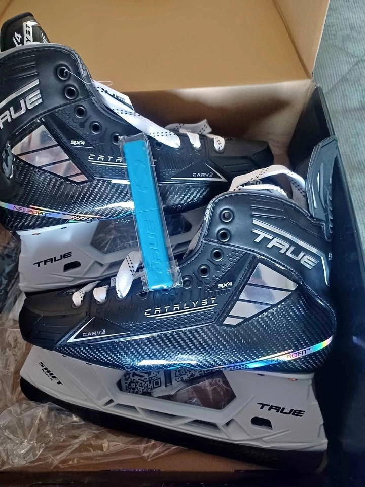 Elite-level, one-piece carbon fiber skates designed for agility. Features a highly moldable Neurofit+ shell for superior comfort and energy transfer. Brand new, Size 11.