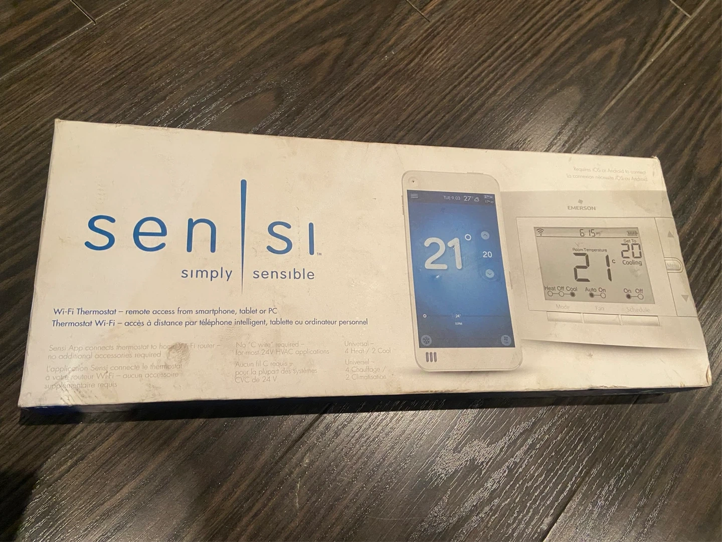 Selling a brand new Emerson Sensi smart thermostat, still in its original packaging! It's a Wi-Fi thermostat that you can control remotely from your smartphone, tablet, or PC. No additional accessories are required for installation. It works with most 24V HVAC systems.
