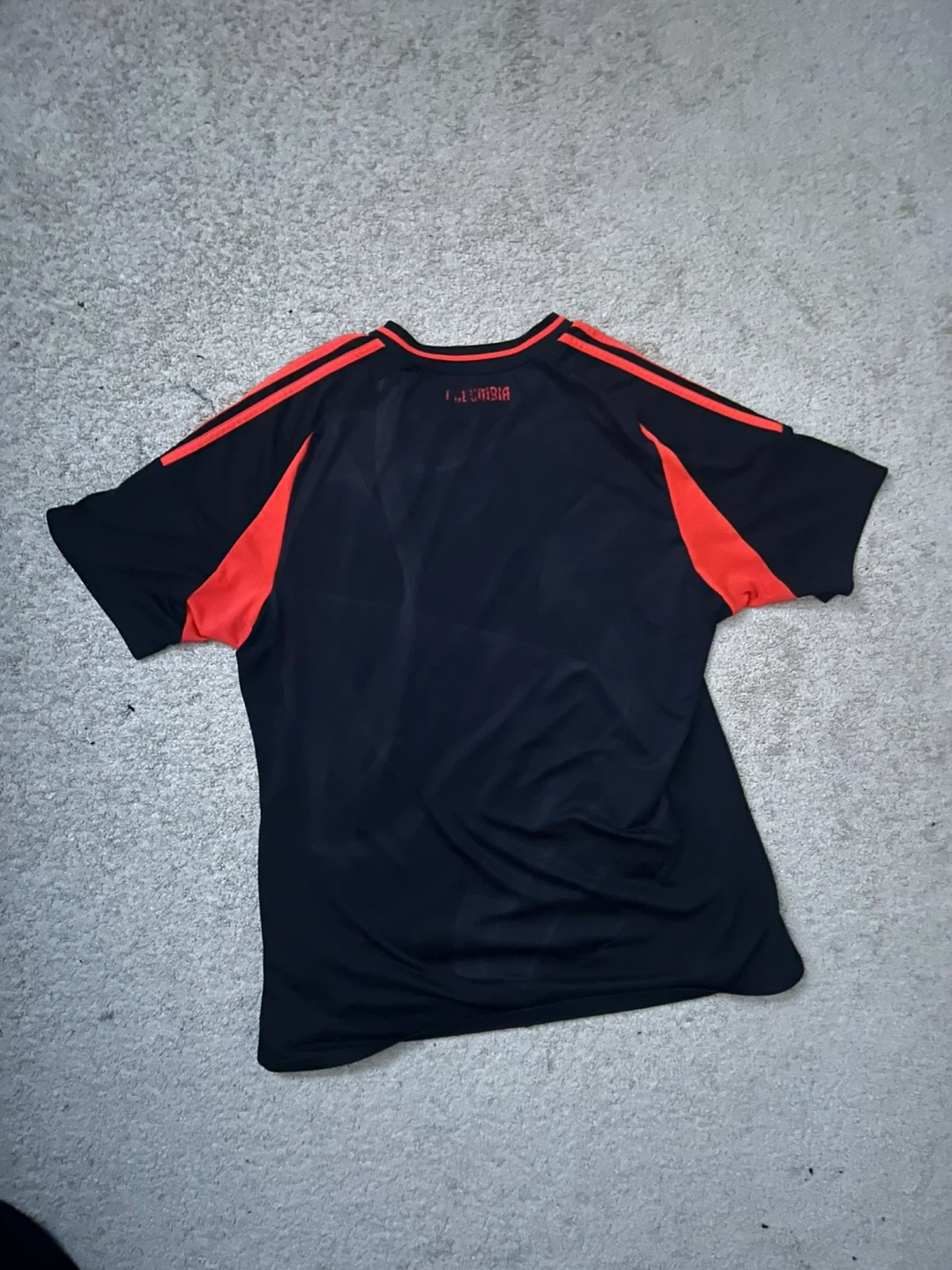 Black Adidas soccer jersey with red accents. Features the Adidas logo and a Colombian soccer crest. Reads 'COLOMBIA' on the back.