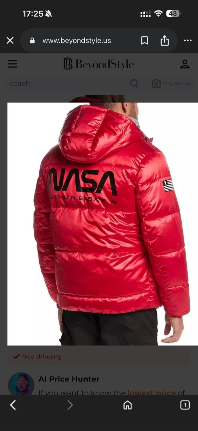 Red NASA Puffer Jacket with Space Print Lining