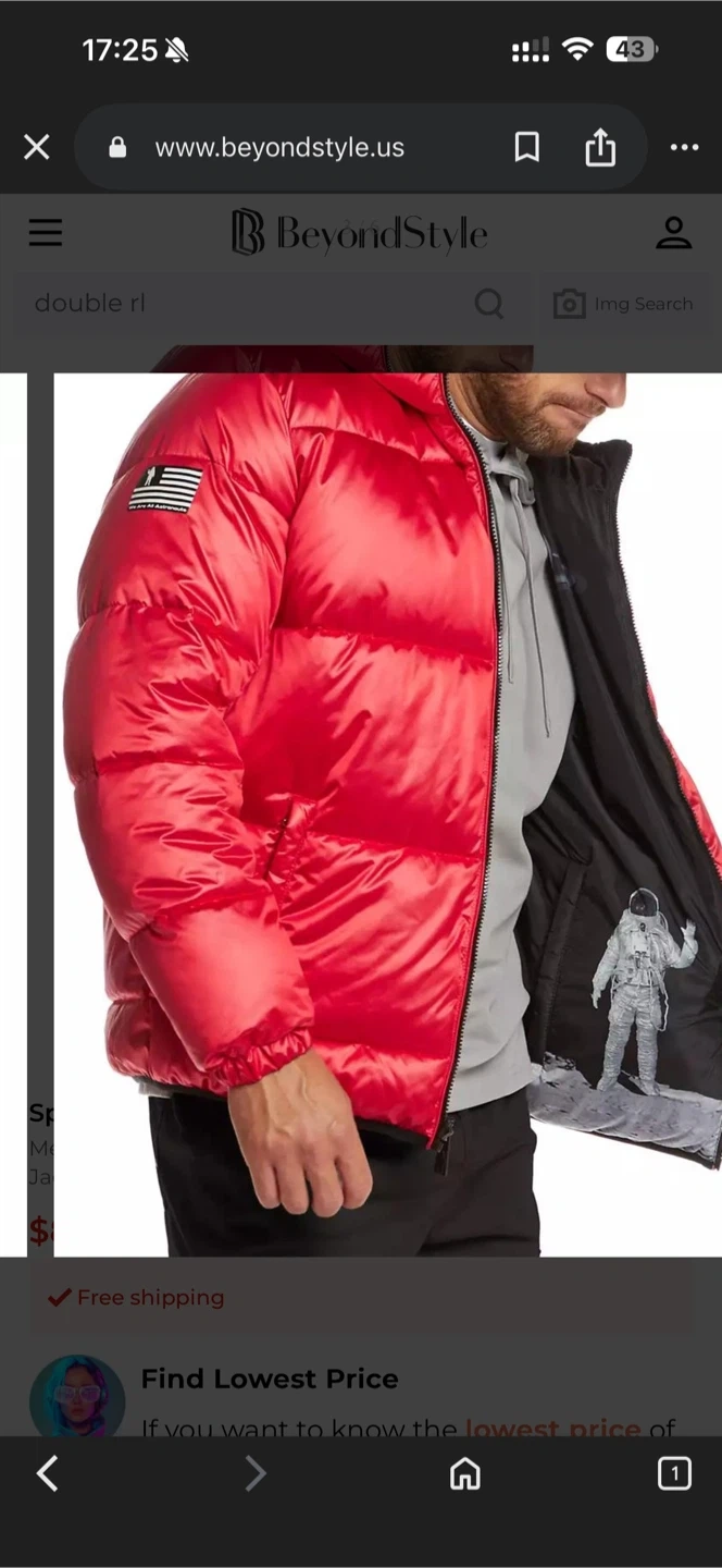 This red puffer jacket features a shiny exterior with a NASA logo on the chest and back. It's reversible, with the inside lining showcasing a cool astronaut and space print! Puffer style for warmth and comfort.