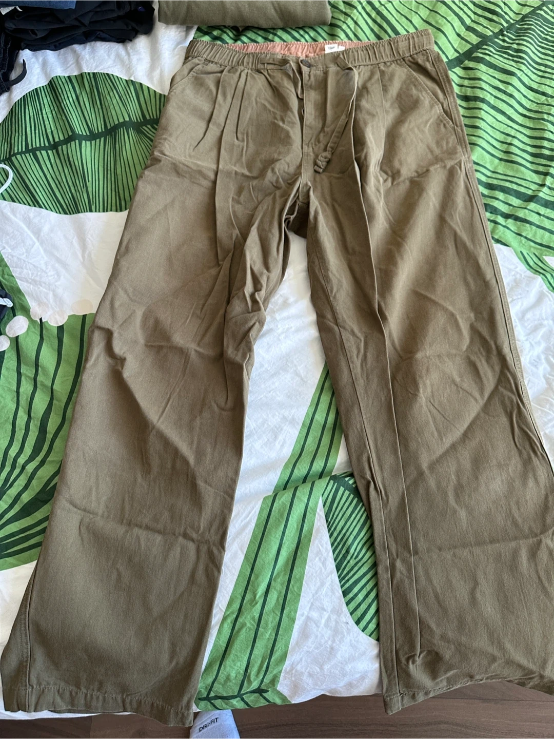 Selling a pair of Zonin pants in olive green. They're a size L and in great condition. Perfect for a casual, comfortable look!