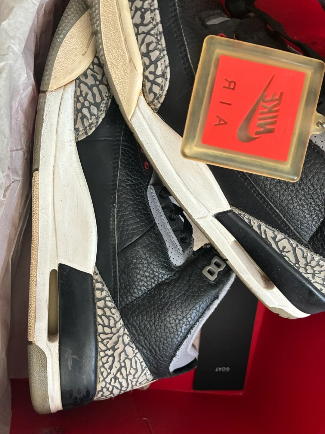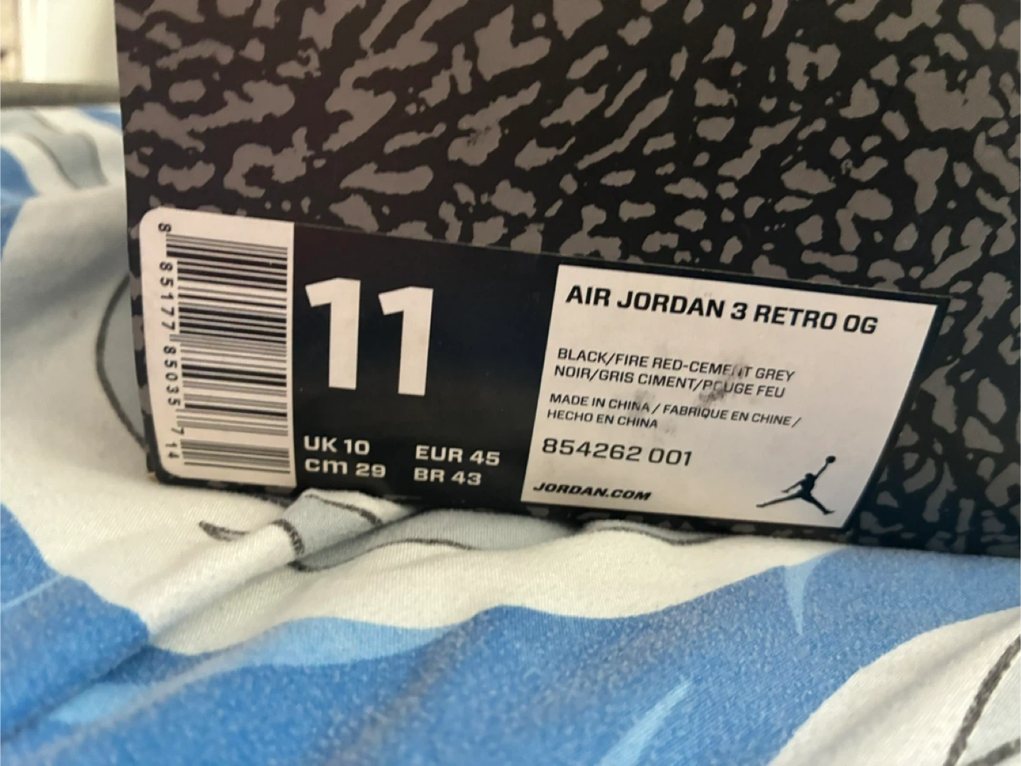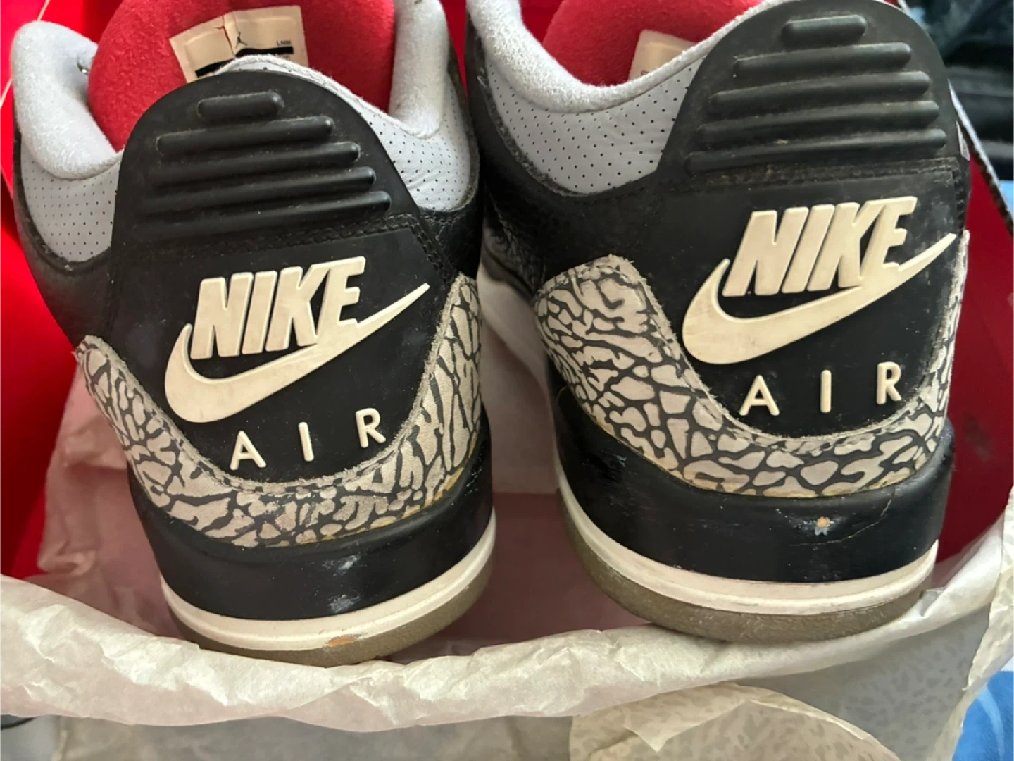 Selling a pair of Nike Air Jordan 3 Retro sneakers in size 11. They show some signs of wear, as you can see in the photos. Still in good condition and ready for a new owner!