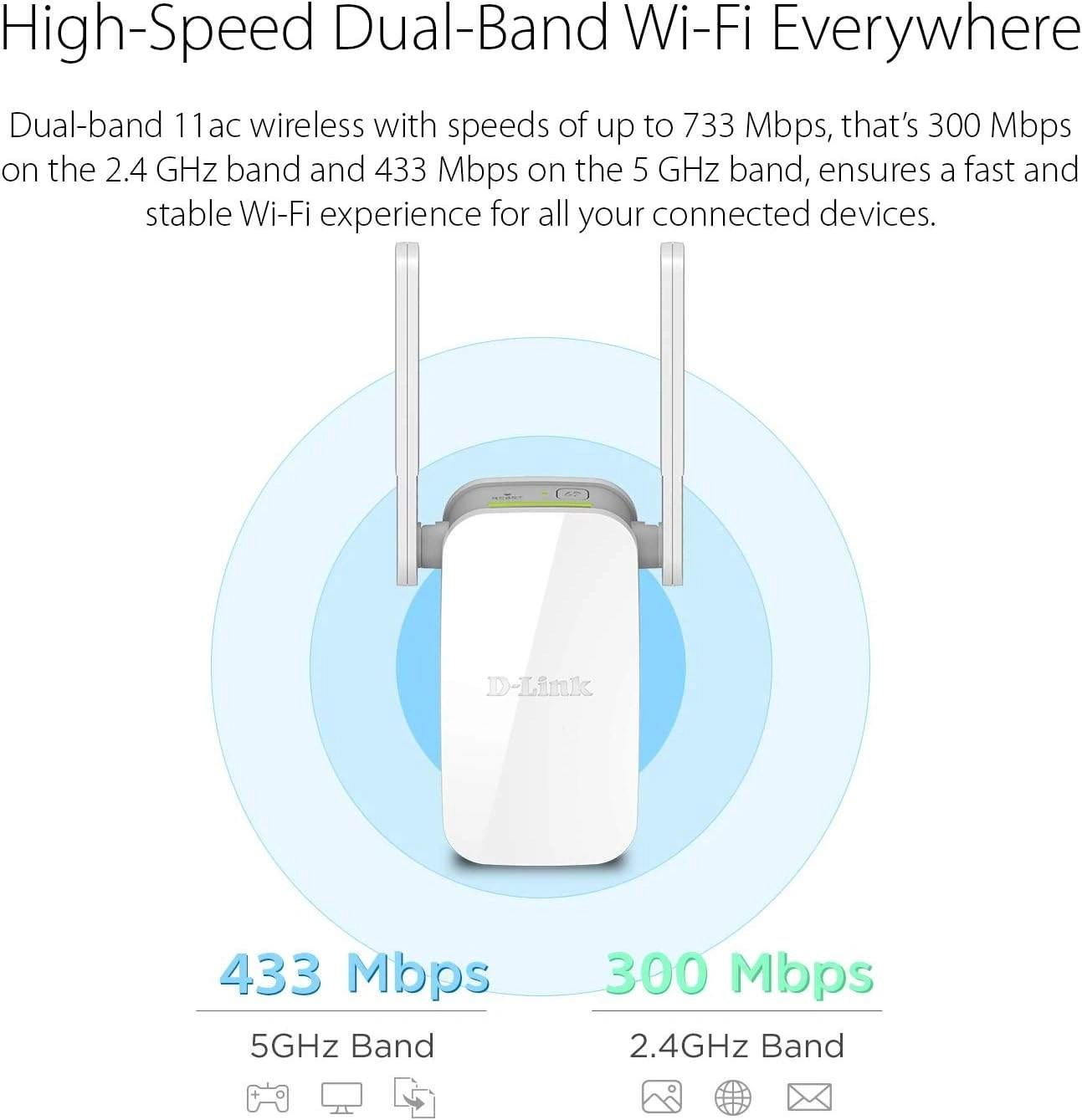 D-Link AC750 Mesh Wi-Fi Range Extender - Cover up to 1300 sq.ft