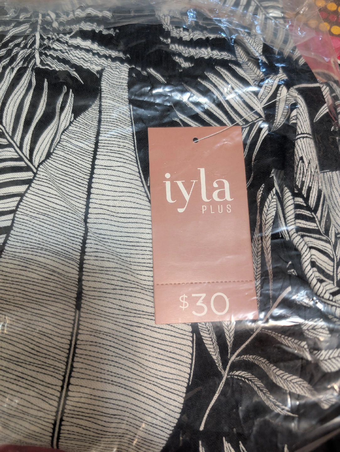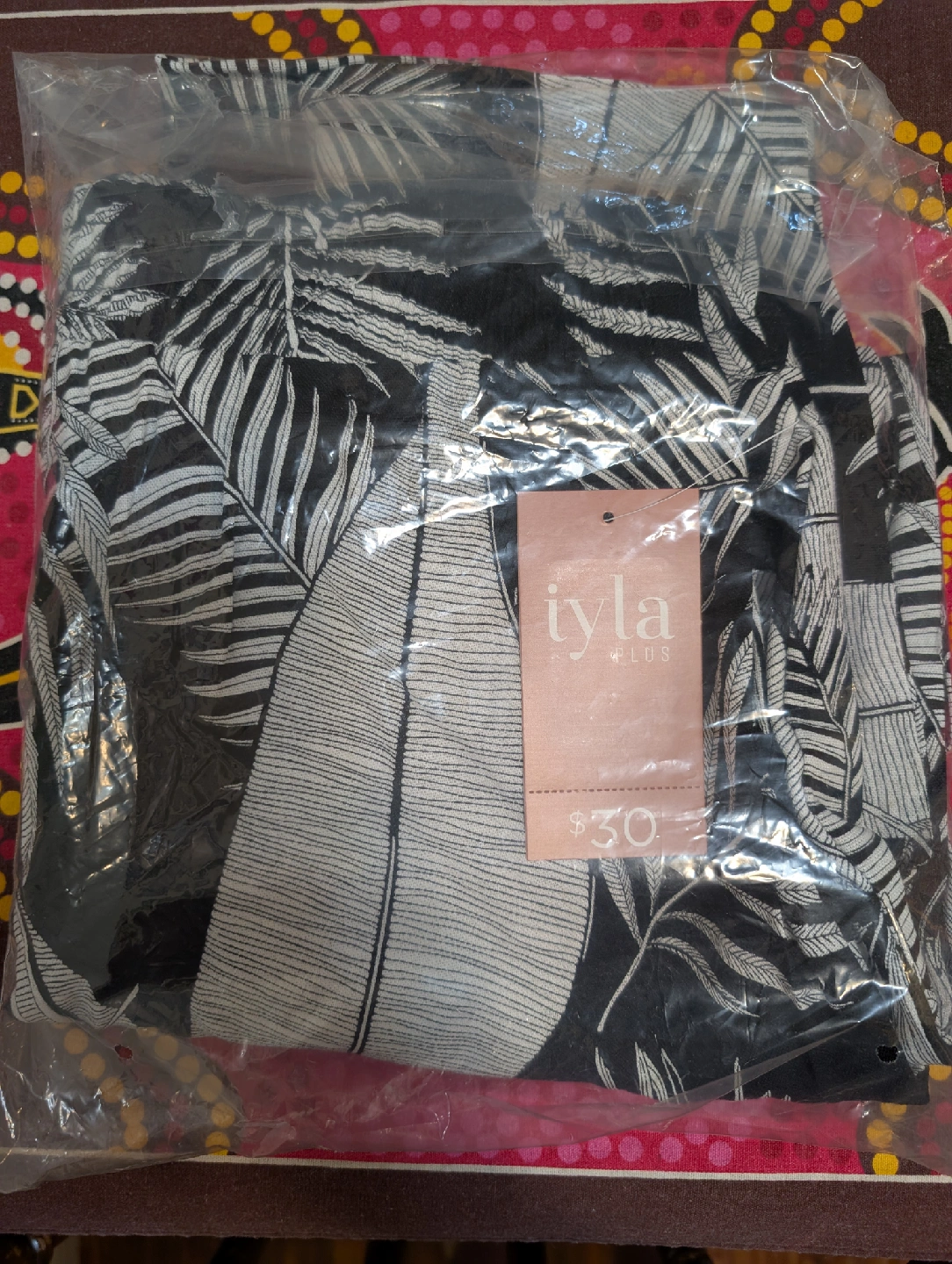 NOW $5 I'm selling a pair of Iyla Plus size pants with a palm leaf print. Brand new. Black and white print. Only taken out of the package to try on and unfortunately they don't fit me. They are a nice pair of pants. $7.50 Pick up ONLY in Beltline. FCFS. Cash only. I'm flexible on pick up times but please don't no-show.