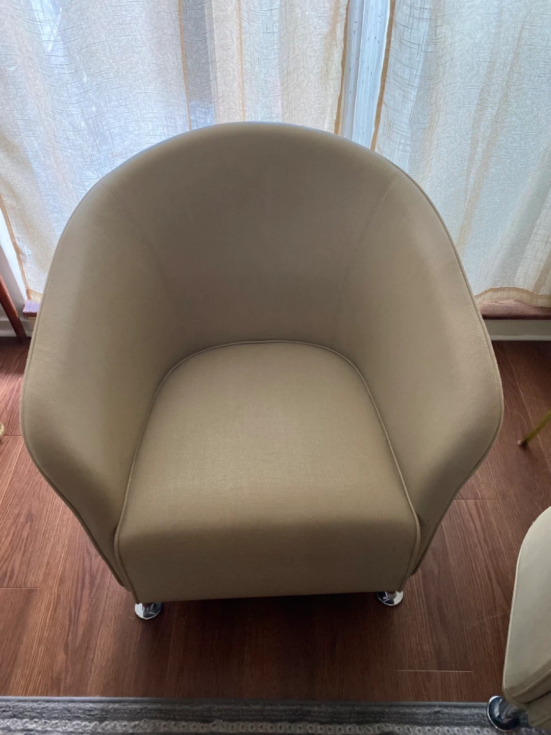 Selling a pair of beige accent chairs. They're in great shape and would look lovely in any living room or den. The neutral colour makes them easy to match with existing decor! Canadian made in Montreal.