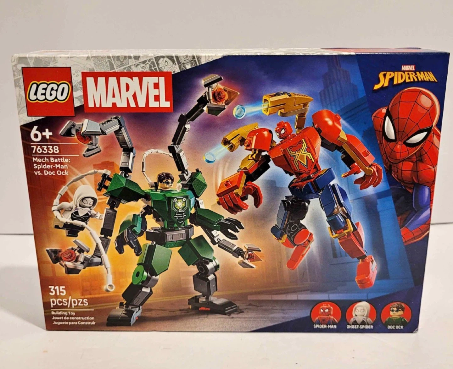 This LEGO Marvel set features the Mech Battle between Spider-Man and Doc Ock. It includes 315 pieces and is recommended for ages 6 and up. Build your own Spider-Man adventure!