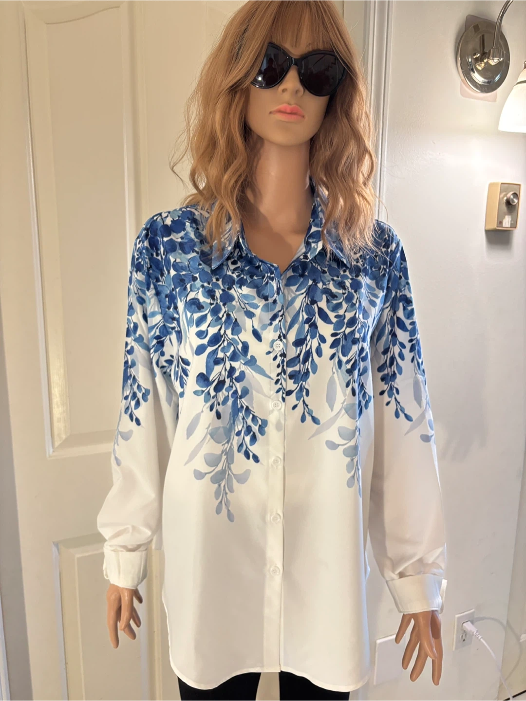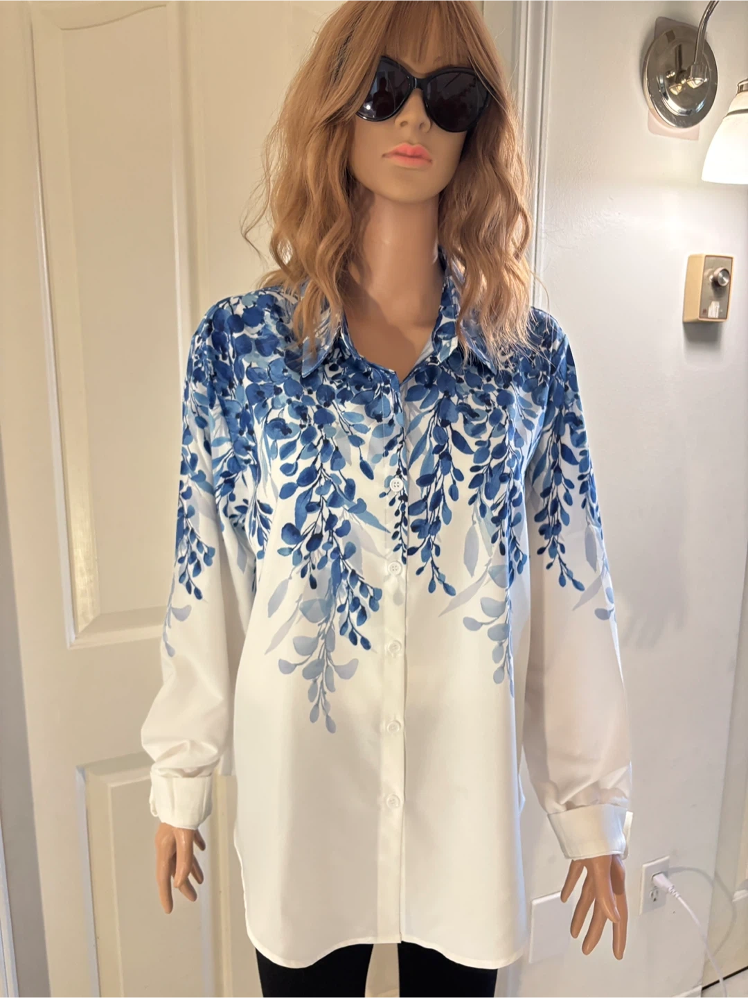 💙 🤍 Women’s NEW White & Blue Long Sleeve Top - Size XXL