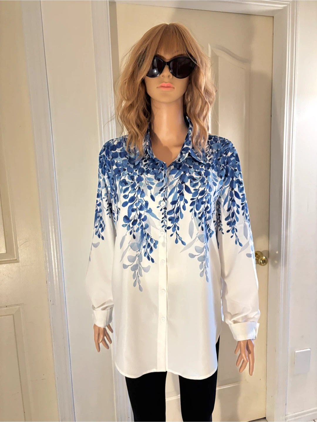 Women’s long sleeve top in a crisp, clean white & blue colour combination. Classic and versatile - perfect for work, casual outings, or layering under a blazer or cardigan. A timeless piece that looks put-together with minimal effort.