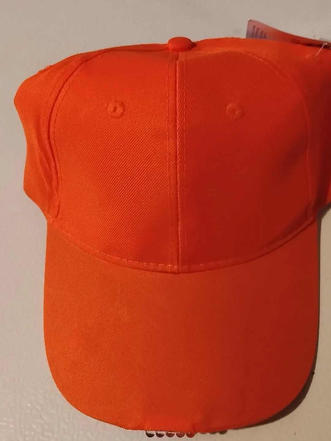 It's a bright orange baseball cap. This cap is made of fabric and features a classic six-panel design with an adjustable strap. It's useful for outdoor activities and work requiring high visibility.