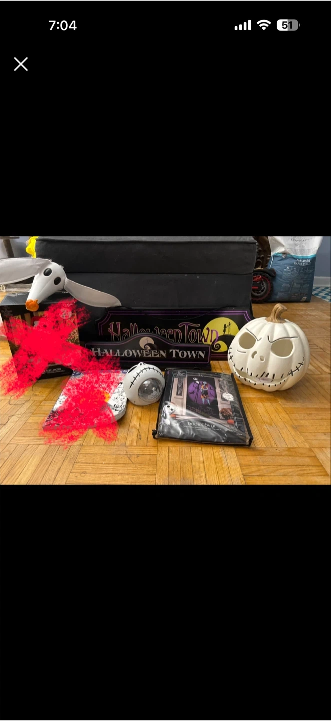 Get ready for spooky season with this Nightmare Before Christmas decor set! It includes a "Halloween Town" sign, a Jack Skellington pumpkin, and Zero dog. Perfect for any fan's Halloween setup!
