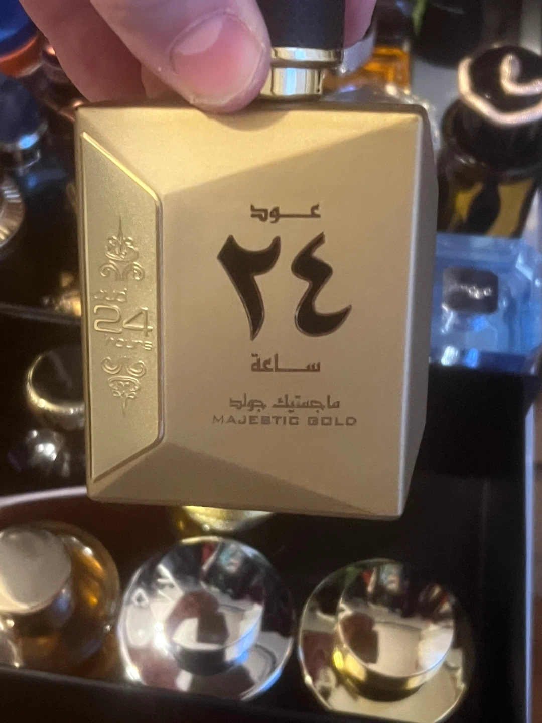 This is 24 Hours Majestic Gold Eau de Parfum. It's a luxurious scent with a metallic gold finish. This fragrance is perfect for evenings out or special occasions!