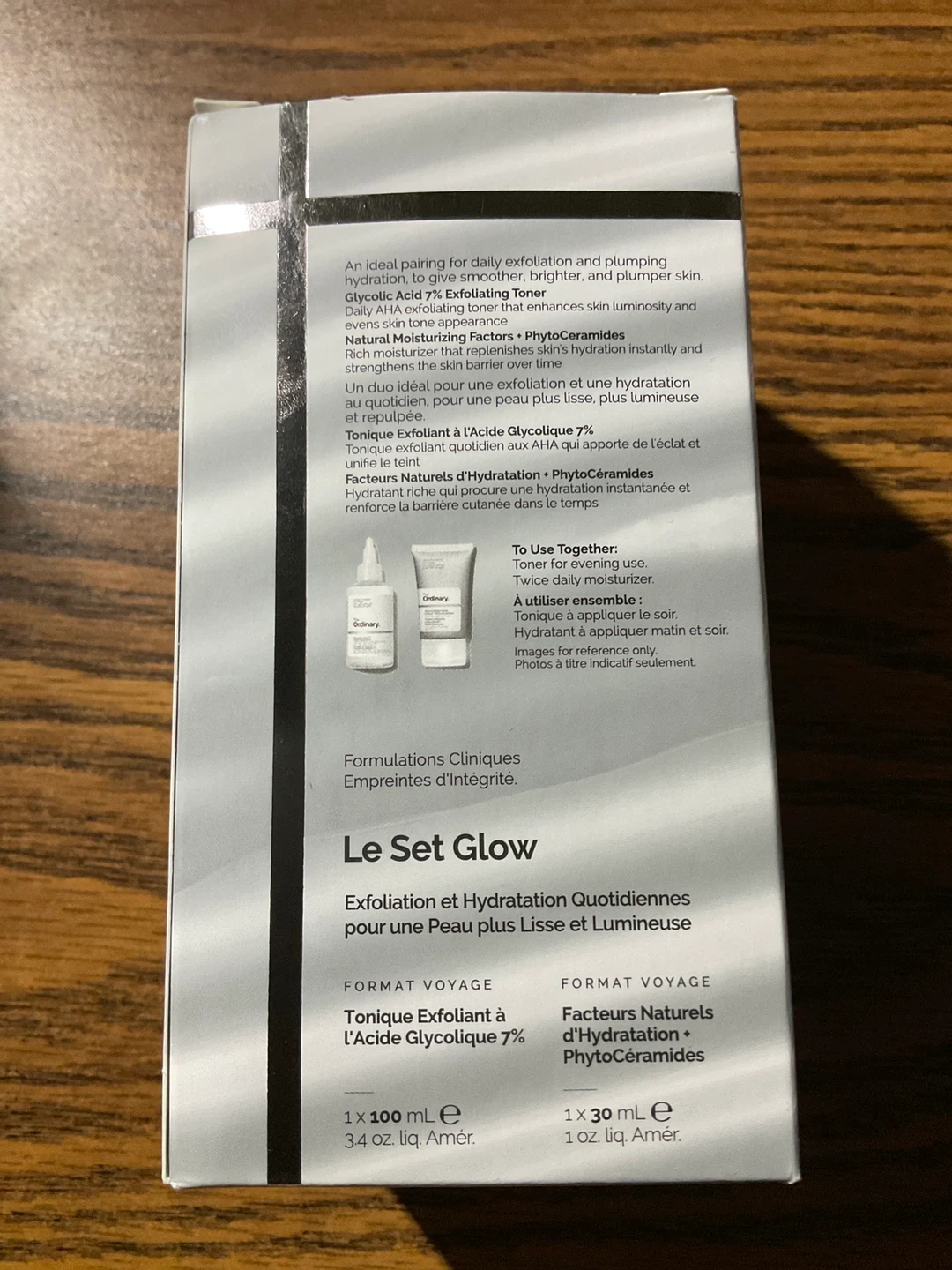 This set includes The Ordinary's Glycolic Acid 7% Exfoliating Toner (100ml) and Natural Moisturizing Factors + Phytoceramides (30ml). It's designed for daily exfoliation and hydration. Get smoother, brighter skin!