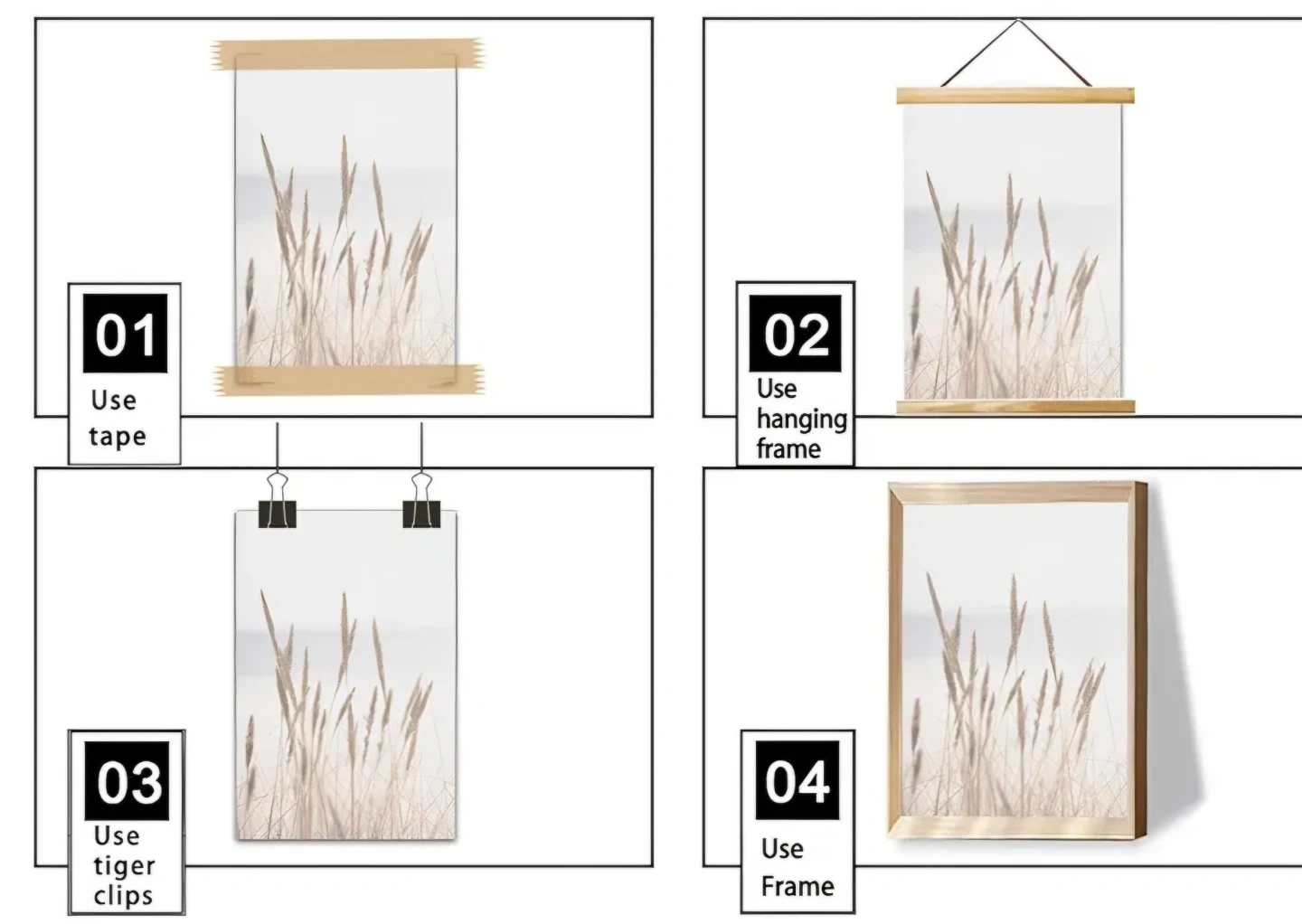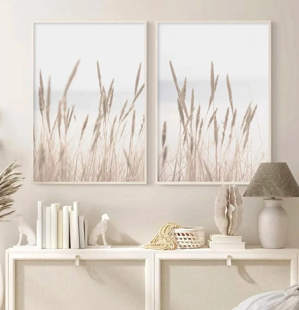 2 Pieces Minimalist Dried Grass Beach Coastal Canvas Prints Wall Art. 19.6"x27.5". Not mounted or framed. Hanging frame included see first picture. Bring a touch of nature indoors. The calming, neutral tones will complement any decor.