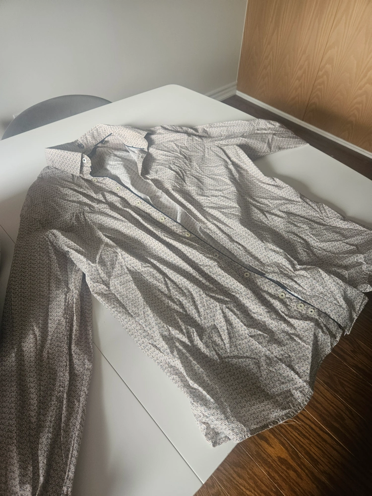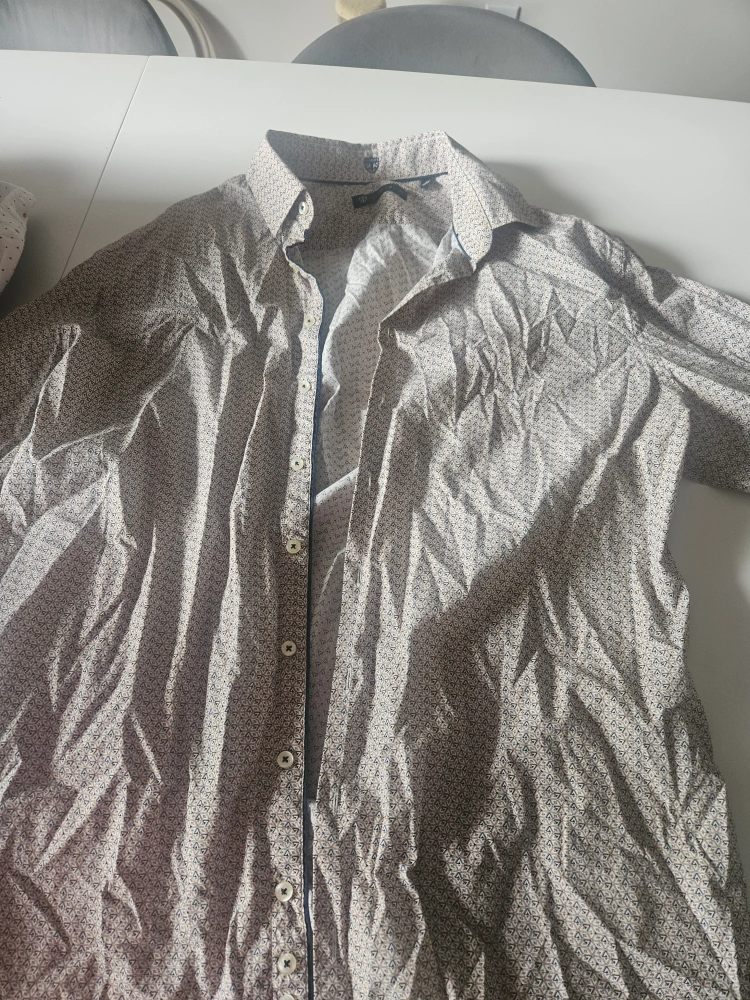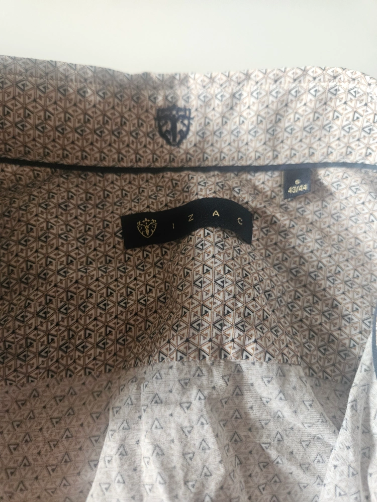 Selling a gently used IZAC dress shirt. It has a unique patterned design and is a size 43/44. Perfect for adding a touch of style to your wardrobe!