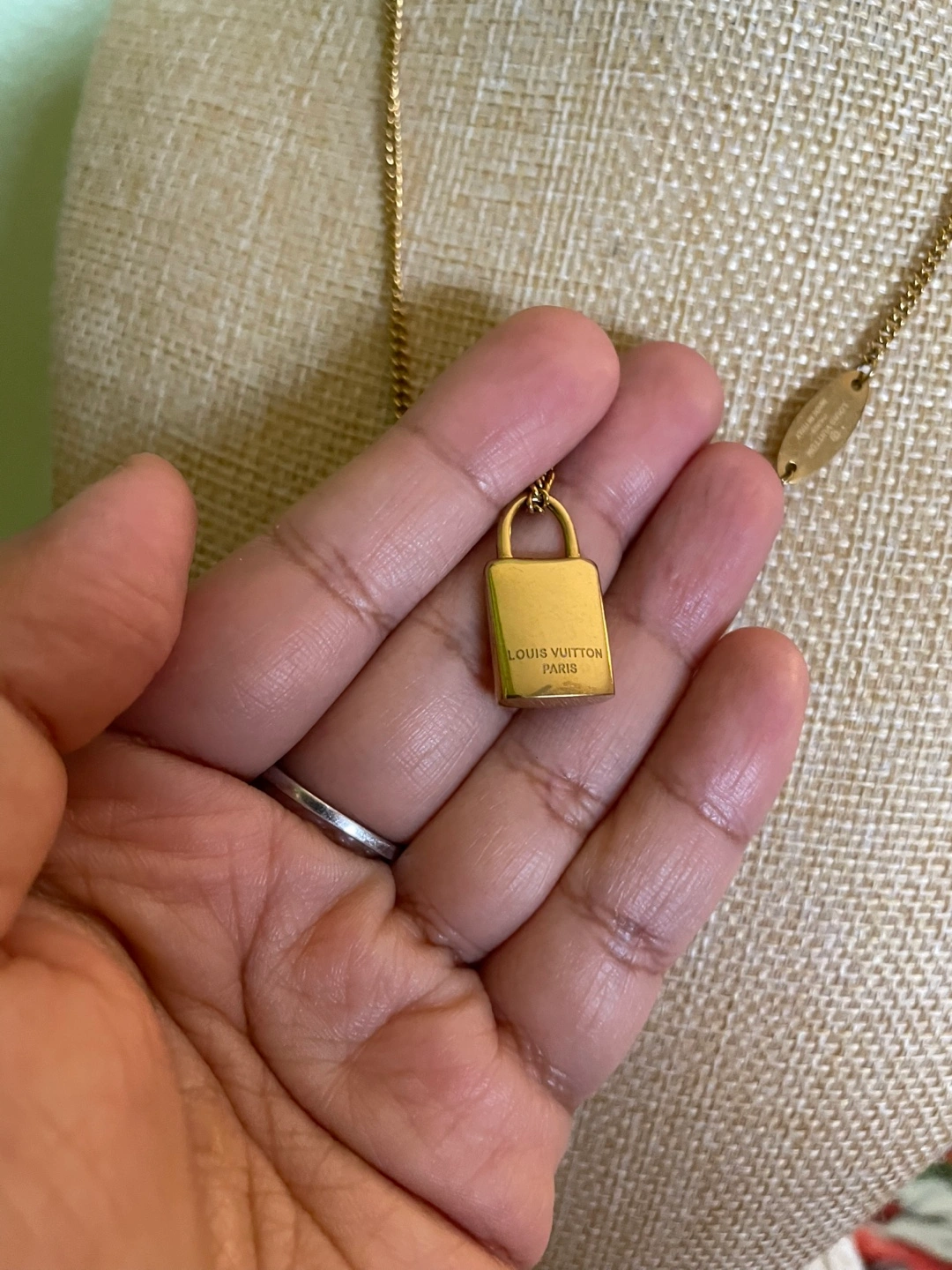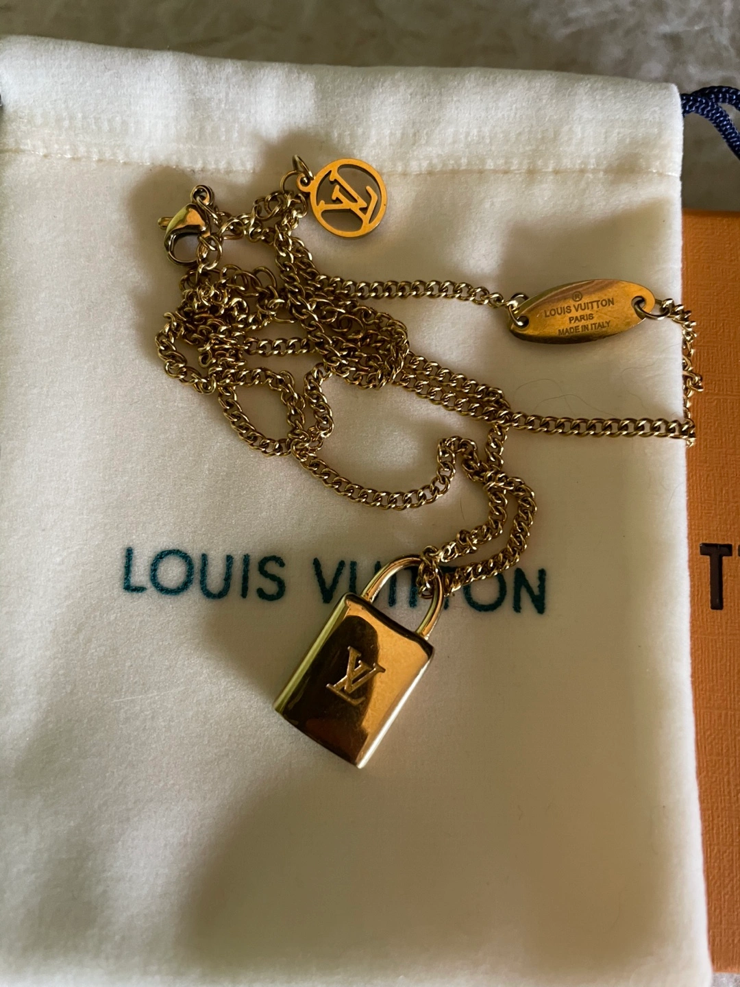 Louis Vuitton Gold Padlock Necklace with box and dust bag
