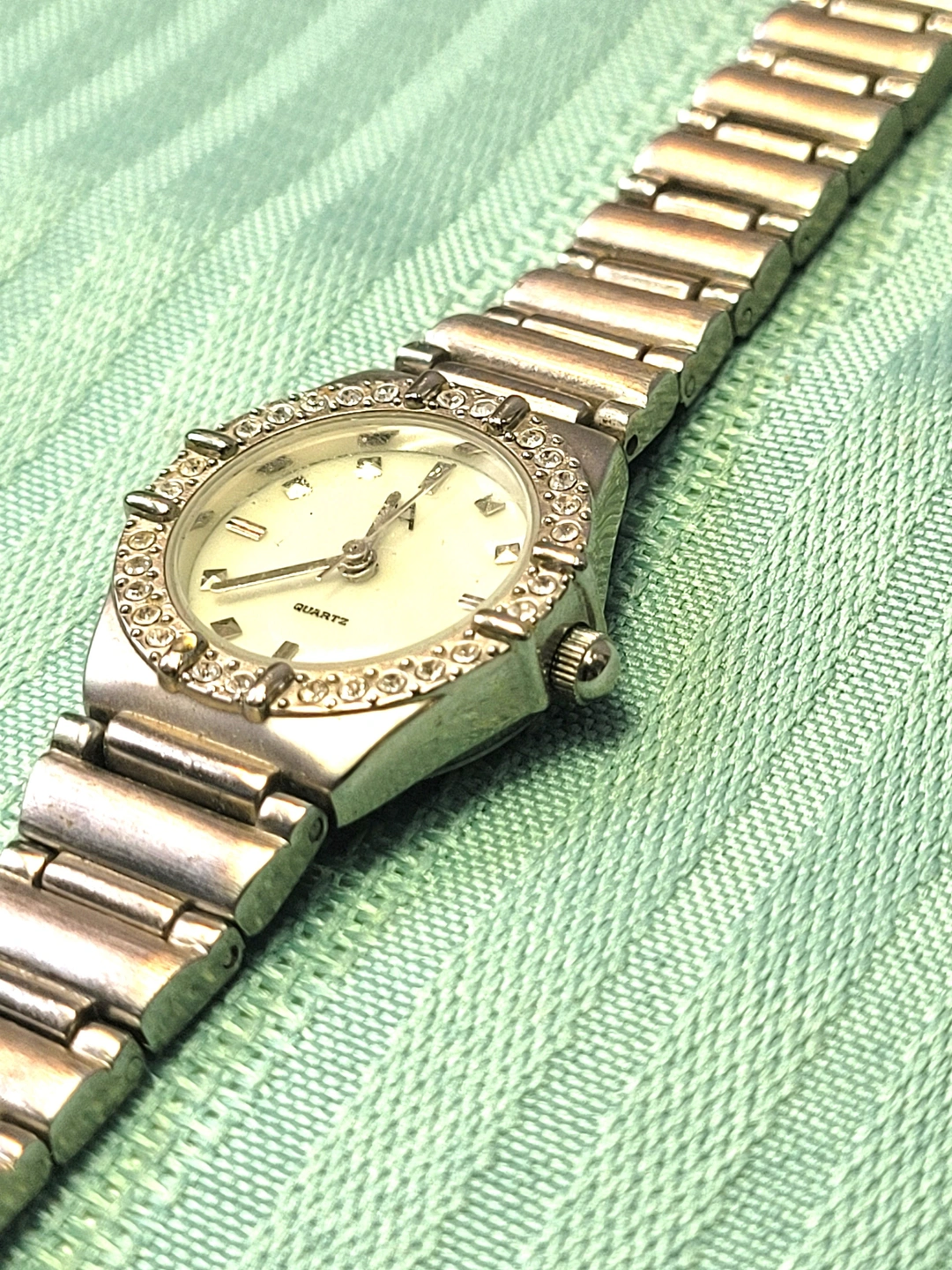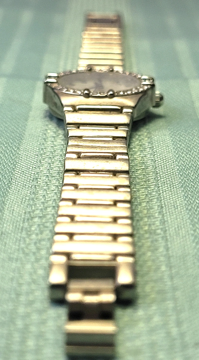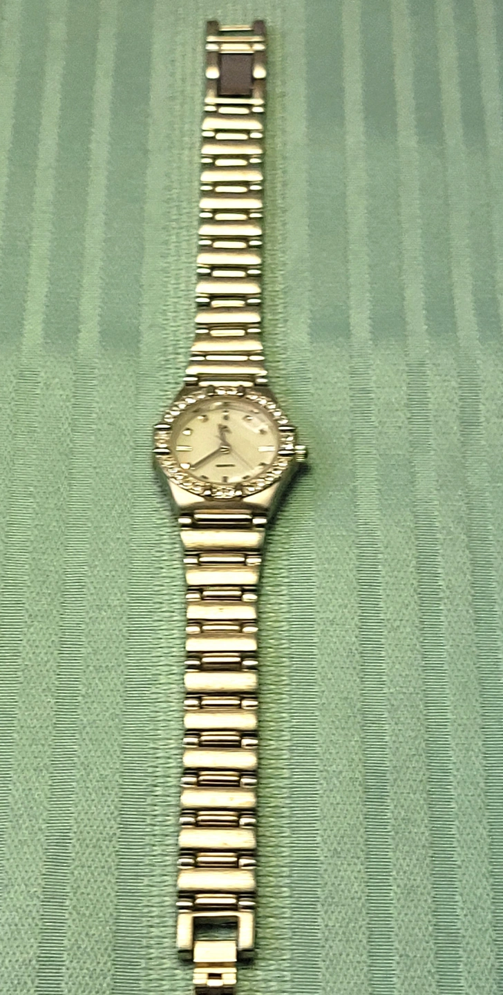 The watch is in good vintage condition with light wear consistent with age. There are minor surface scuffs on the band and case back, but the crystal face is clear and all decorative stones remain intact and bright. Tested and keeping accurate time.