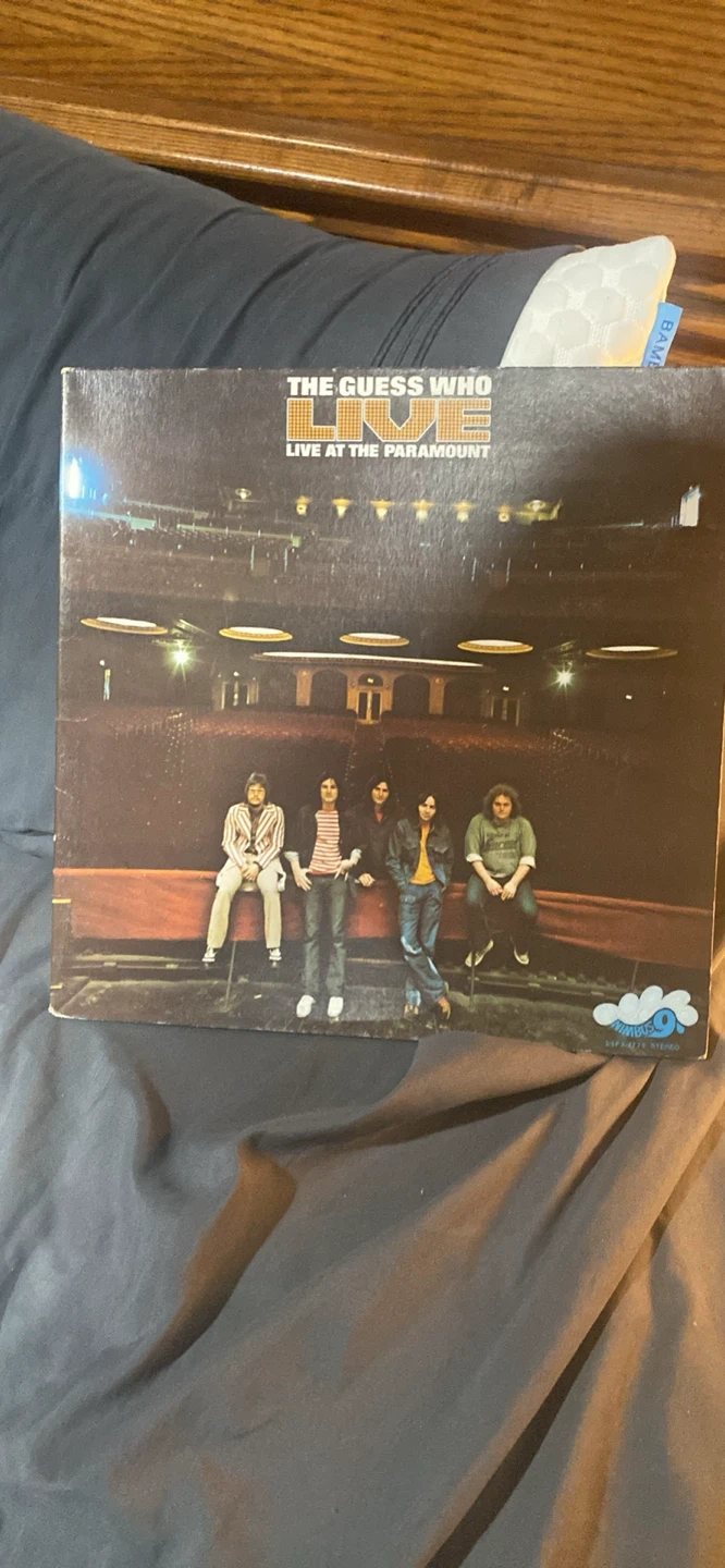 This is The Guess Who's "Live at the Paramount" vinyl record. It's a live album featuring the band performing. The record label is Nimbus 9.