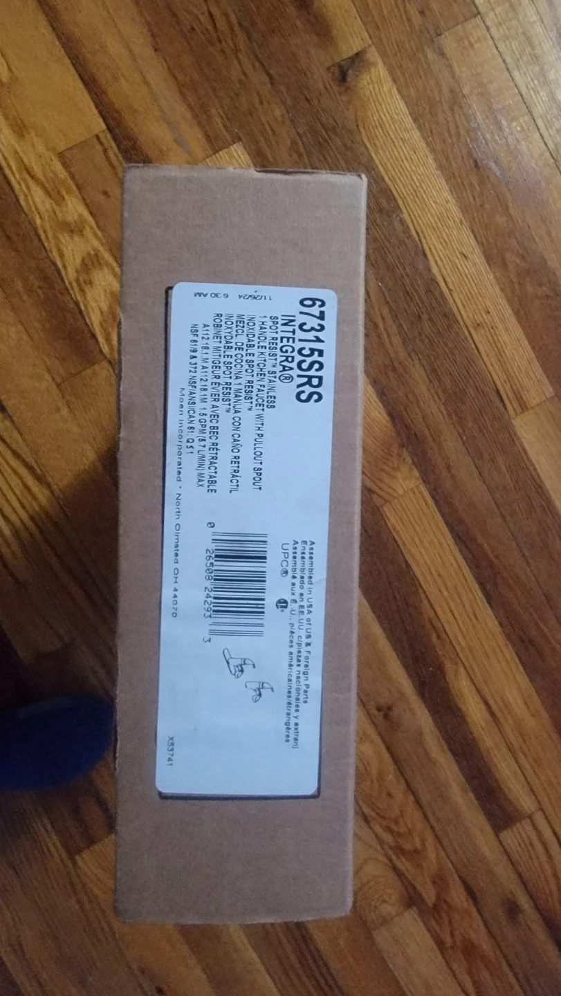 Selling a Moen Integra kitchen faucet in spot resist stainless. Model number is 67315SRS. It comes with a 1-handle high arc pulldown spout. New in box