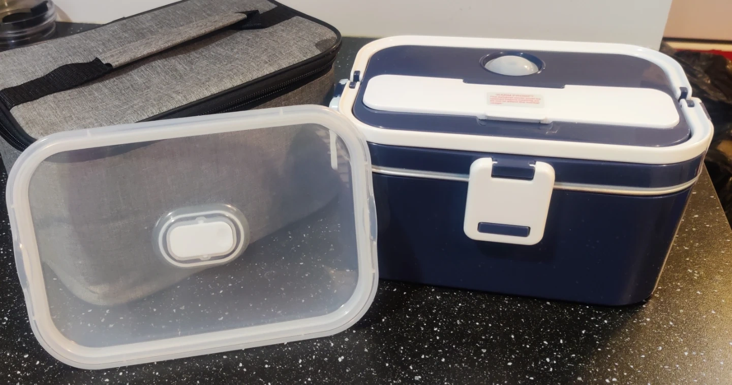 This electric lunch box is made of stainless steel and comes with an insulated carrying bag. It's perfect for keeping your food warm on the go. The lunch box has a removable compartment for easy cleaning.
