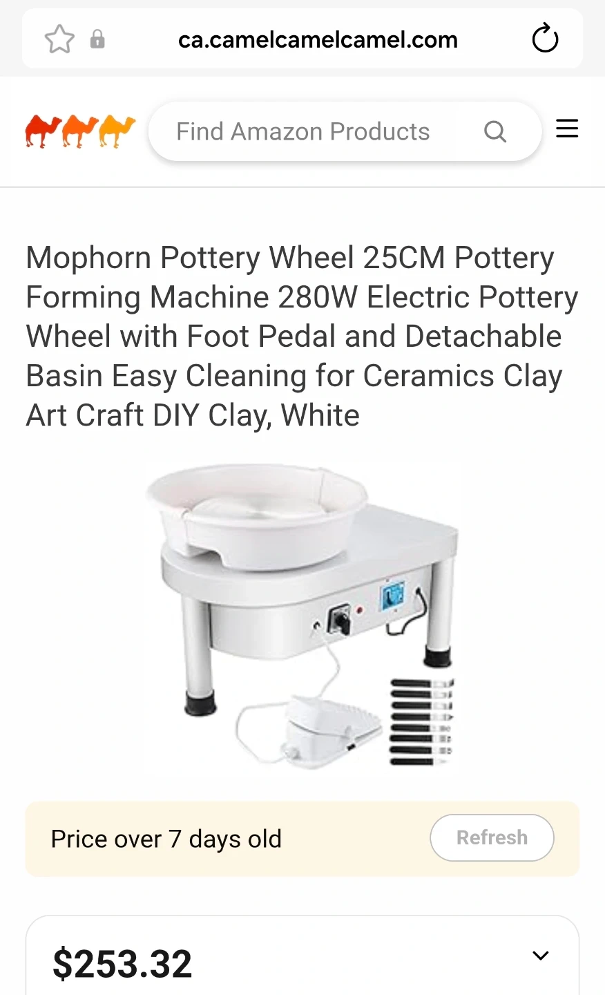 This Mophorn pottery wheel has a 25CM turntable and a 280W motor. It comes with a foot pedal for control and a detachable basin for easy cleaning. Includes various pottery sculpting tools.