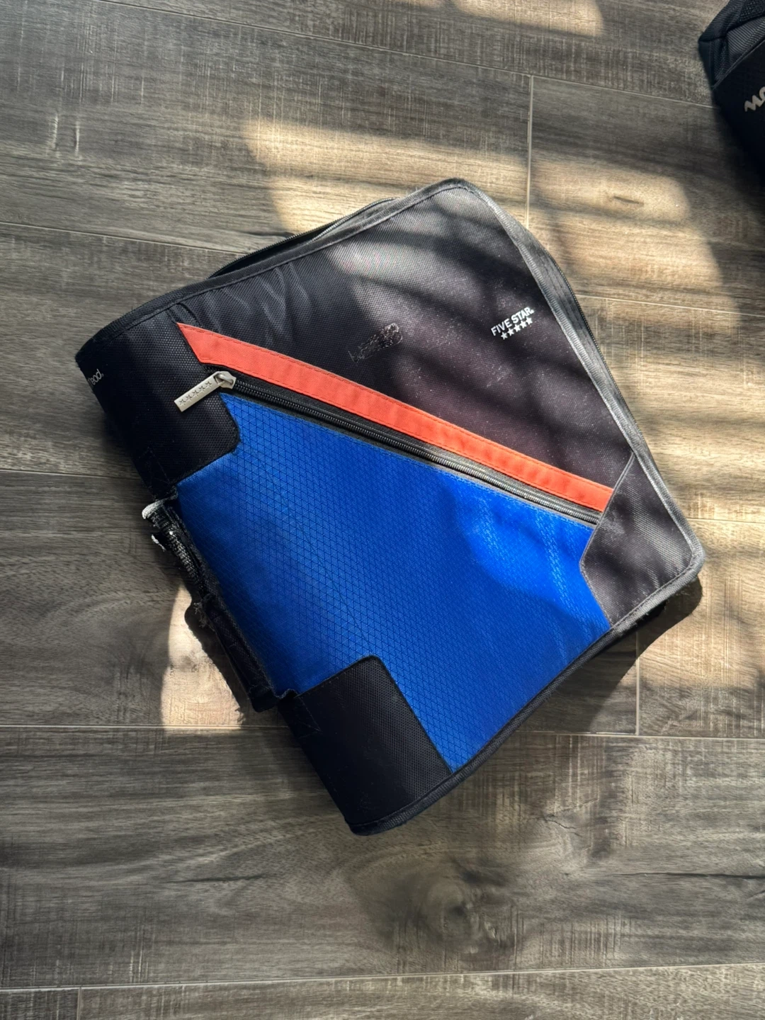 Selling a Five Star zipper binder in black and blue. It's in great shape and ready to help you stay organized for school or work! It has a zipper closure to keep everything secure and some interior dividers to help you stay organized!