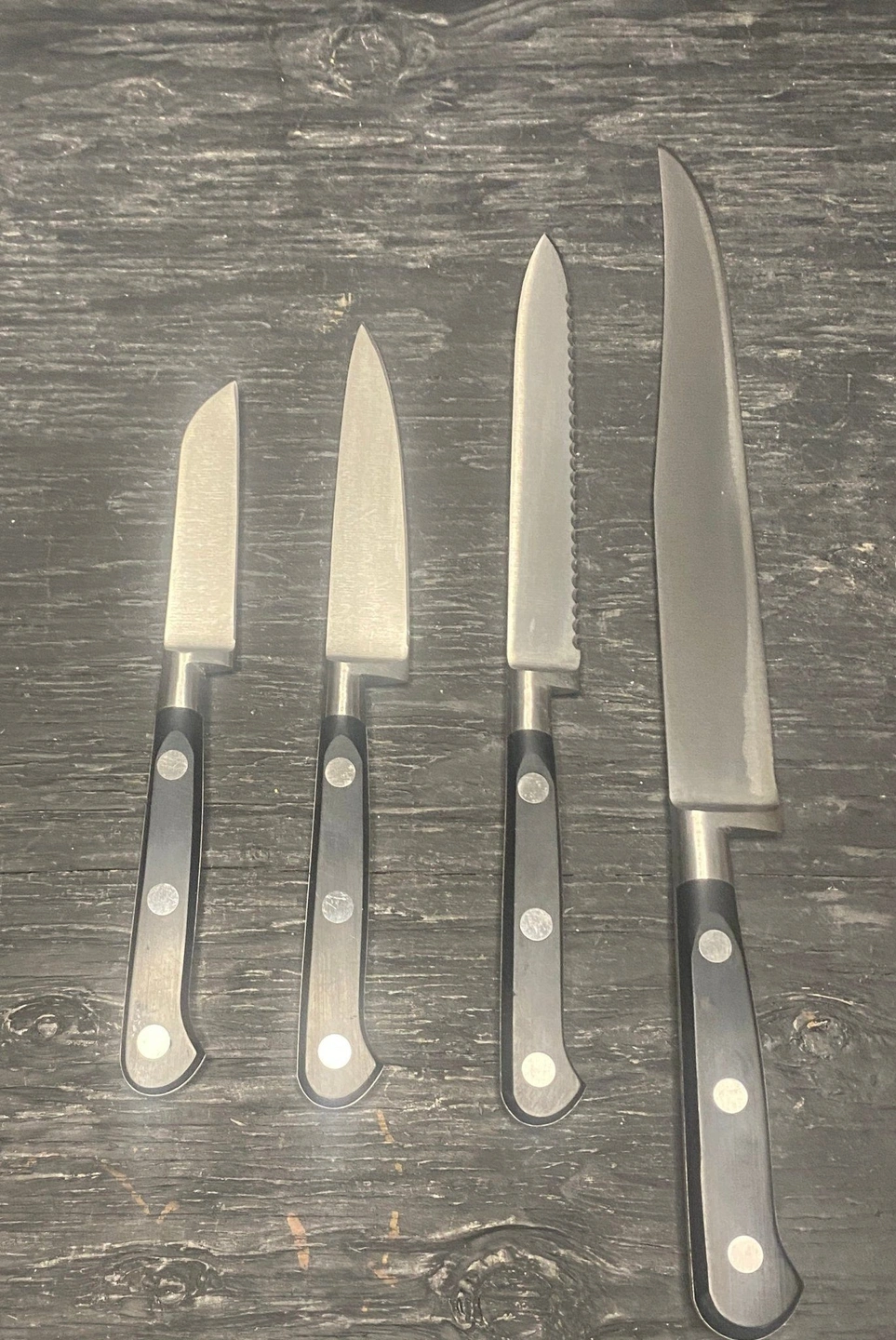 15Equip your kitchen with professional level tools that you will enjoy every day. This 10 piece set from J.A. Henckels brings precision German steel knives and a solid block to store them safely. The blades are made with carbon stainless steel and hardened for long edge life. The ergonomic handles and full tang design give you control, comfort and durability in one clean set. You will own all the essential knives for prepping everything from herbs to roasts plus a sharpening hone to keep them sharp, and a dedicated block that keeps the set organized and accessible. A perfect addition if you are building your kitchen setup or replacing tired tools, this set delivers reliability, durability, and style you will feel each time you cook. Use them for weekday dinners, weekend gatherings, and everything in between. These knives are ready to use and will be an excellent addition to your cooking prep. This J.A. Henckels 10 Piece Chef Knife Set with Block includes the following: 31519-180, 7” Santoku 31536-209, 8” Classic Chef's knife 31513-200, 8” Classic Precision bread knife 31502-100, 4” paring knife 31500-089, 3.5” paring 31507-200, 8” Slicing/carving knife 31592-130, 5” serrated bread/utility knife Kitchen shears hone/cylindrical sharpener Knife Block The knives are sharp and the block is in excellent pre-owned condition. The knives show no to nominal use. Local pickup is in Etobicoke near Islington and The Westway. We offer shipping and local delivery for this item. Please send a message about availability and cost associated with these respective services. Alternately, if you wish to pay by credit card or Paypal and have it shipped, you can order it on our website by copying and pasting this link into your browser: https://hljathome.com/products/j-a-henckels-9-piece-chef-knife-set-with-block