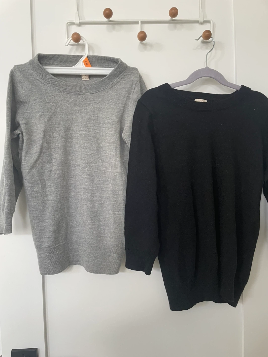 5Selling 2 of J.Crew sweaters. One is a light grey and the other is black. Both are size small and in good condition!