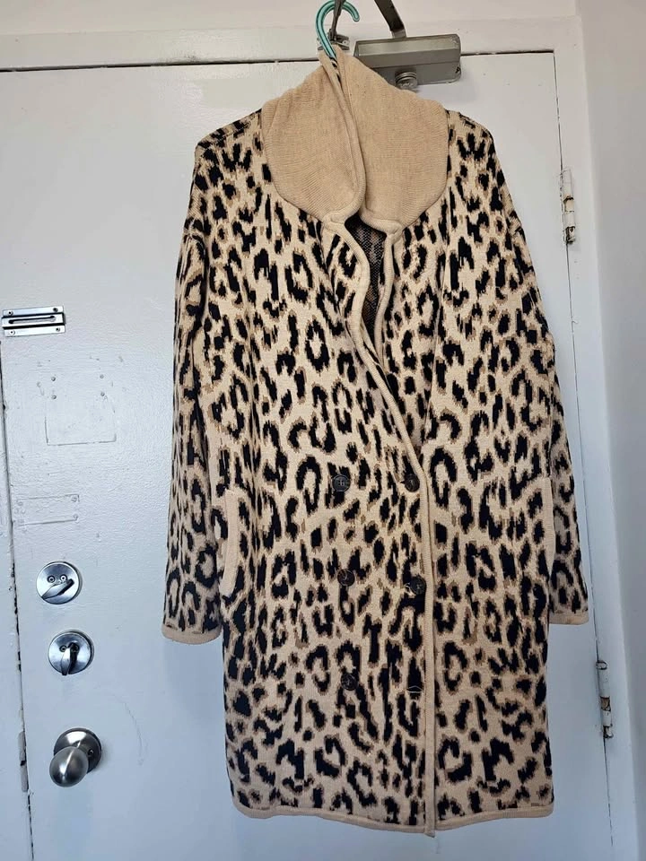 J. Crew Double Breasted Sweater Coat Cardigan in Leopard. Size M. From smoke free & pet free home. Pickup from Carabob Court, Scarborough. Main intersection: Birchmount & Sheppard.