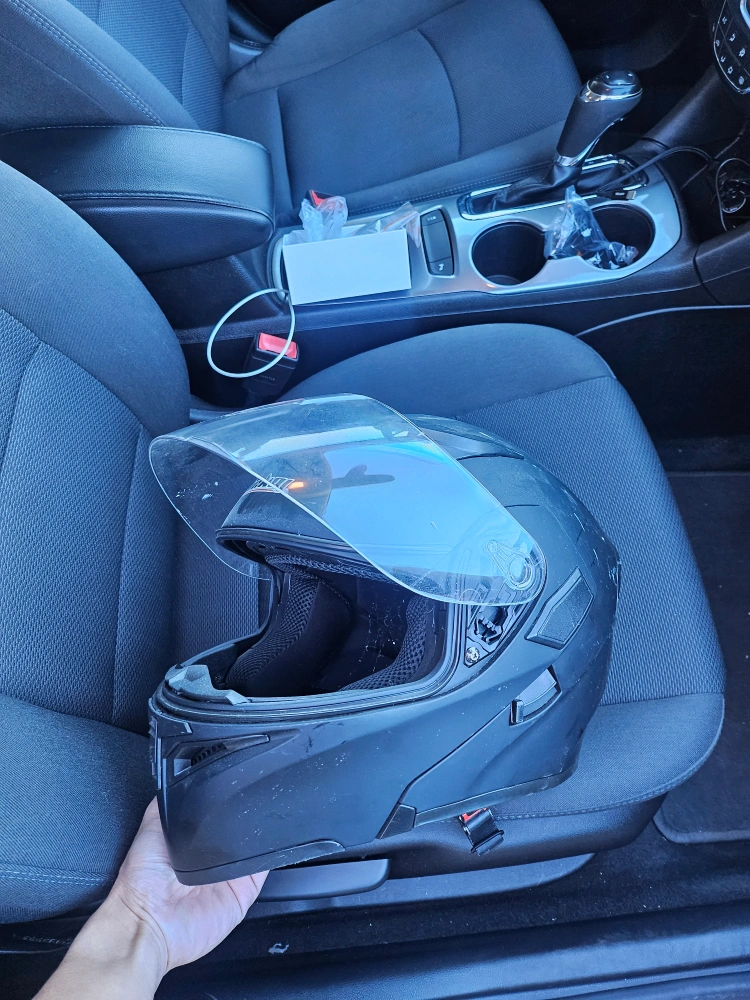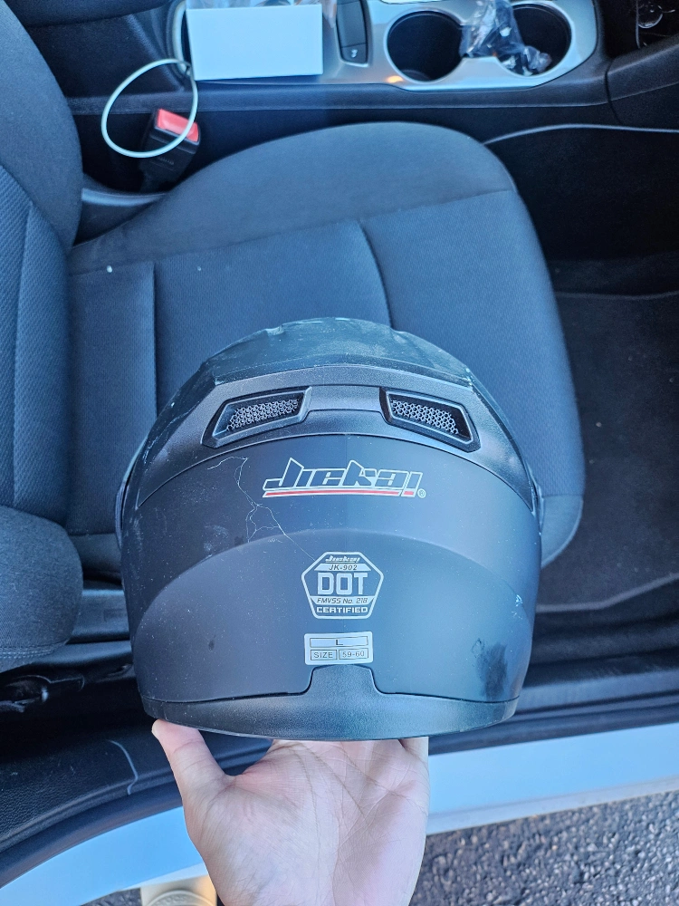 31Black motorcycle helmet with a clear visor. DOT certified. Size L (59-60cm).