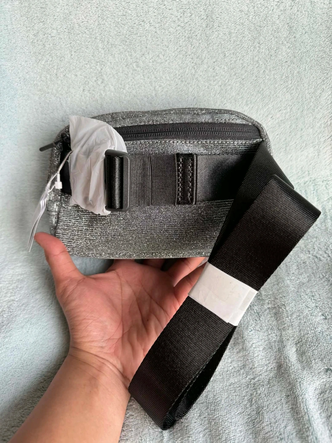 This Lululemon Everywhere Belt Bag comes in a shimmering glitter fabric. It's perfect for carrying your phone, keys, and wallet. The adjustable strap makes it easy to wear crossbody or around your waist.