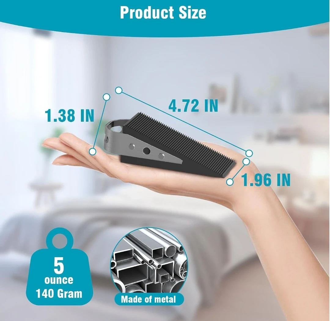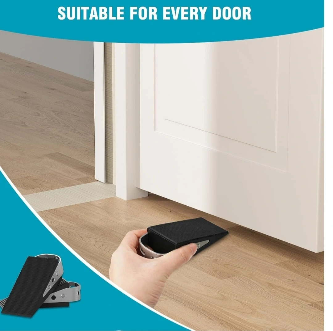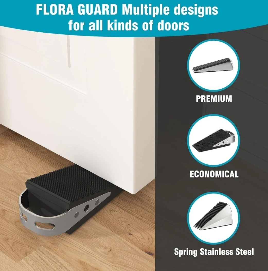 FLORA GUARD Heavy-Duty Door Stoppers - 2 Pack Non-Scratching Rubber Door Stop Wedge, Anti-Slip Door Stop for Home & Office, Brushed Stainless Steel & Black Rubber, Ideal for All Floor Types, Black