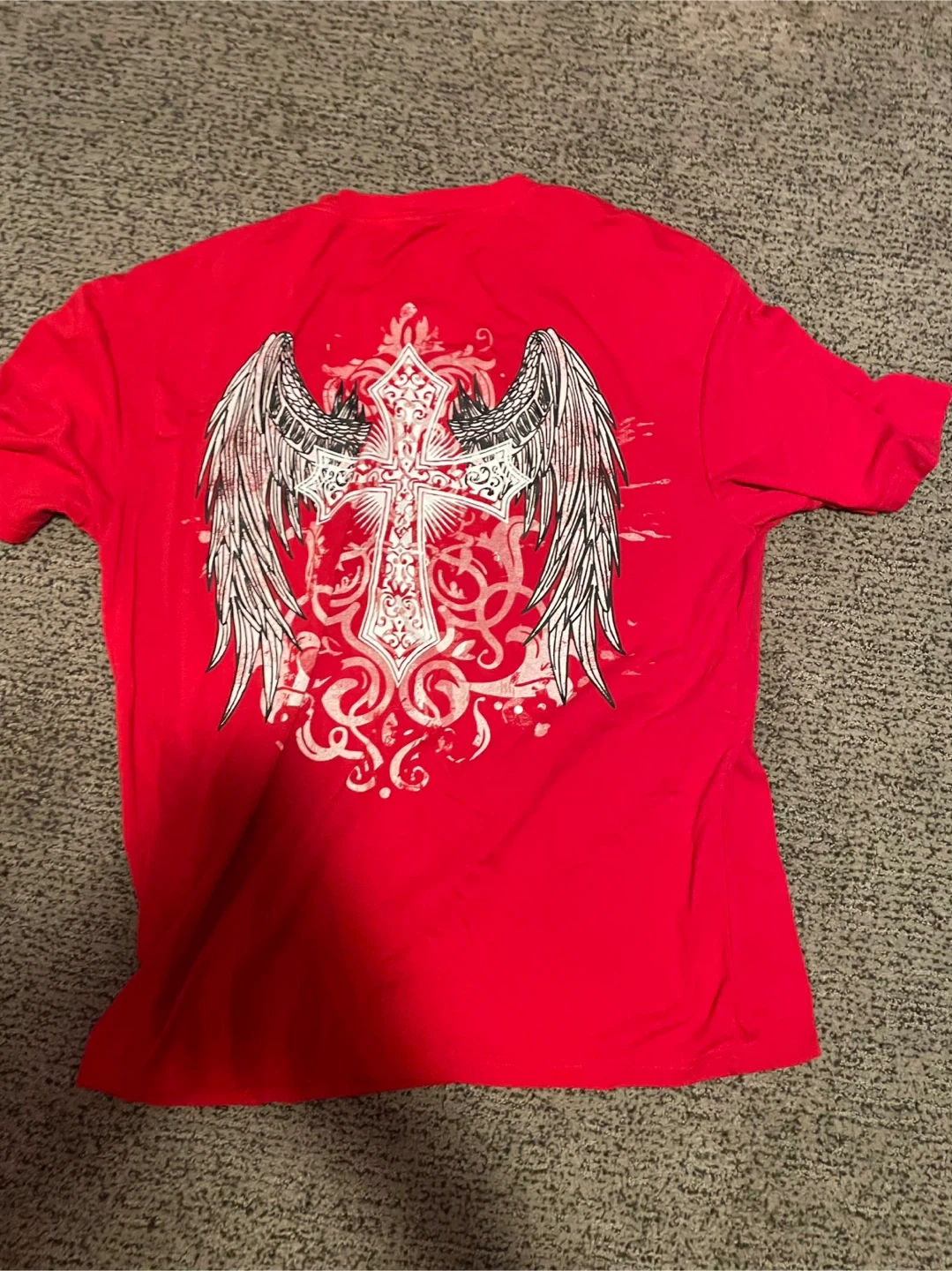Red T-Shirt with Cross and Wings Graphic
