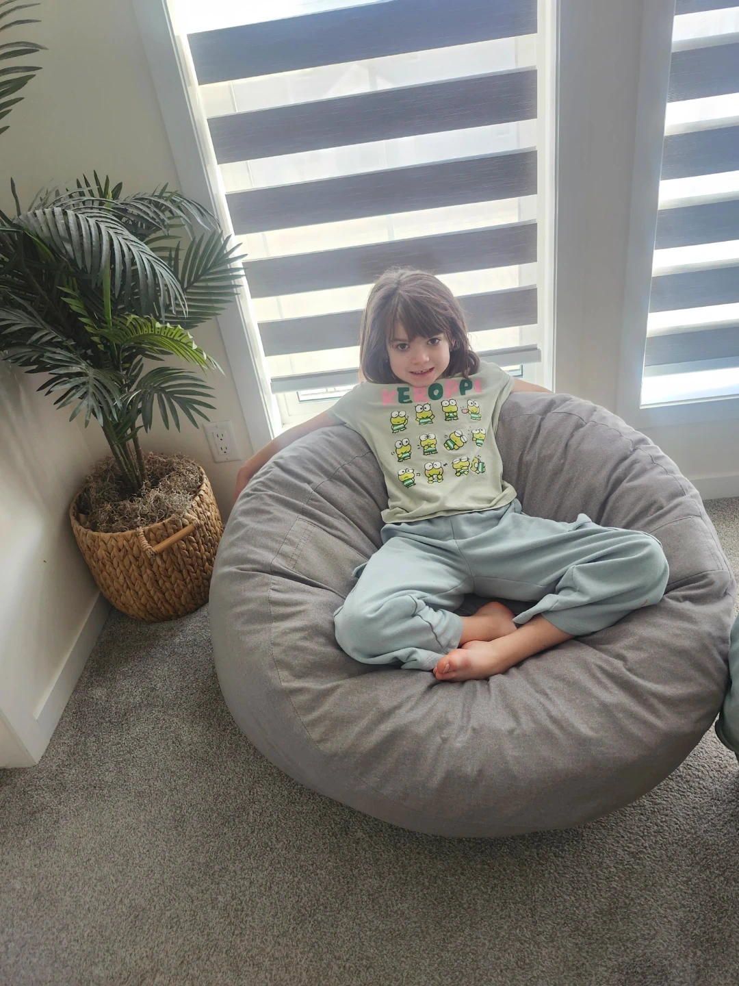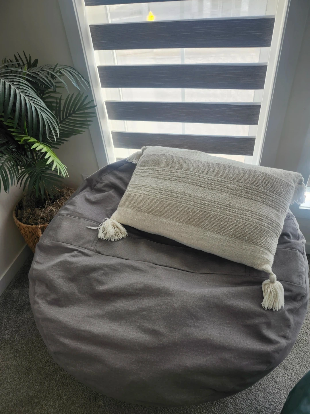 This Big Joe bean bag chair is a comfortable and casual seating option. It's made of durable fabric and is great for lounging, made with foam. Perfect for a playroom or living room!