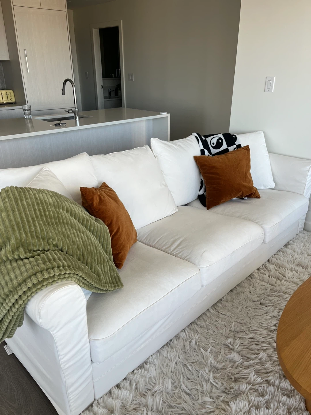 Selling our IKEA HÄRLANDA sofa because we’re moving away. It’s super comfy and has that deep, cozy cloud couch vibe. 245cm x100cm